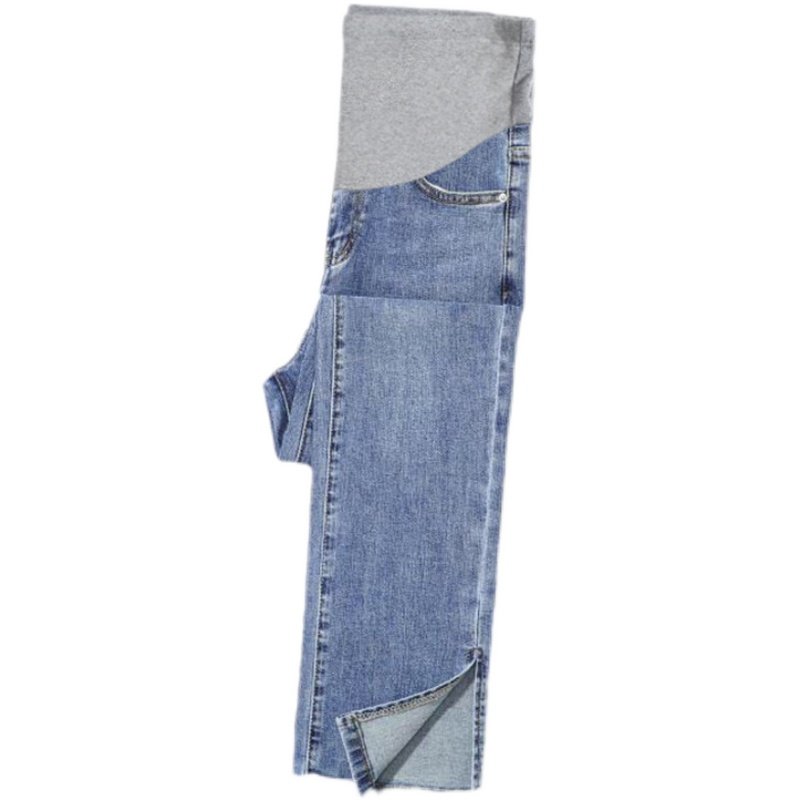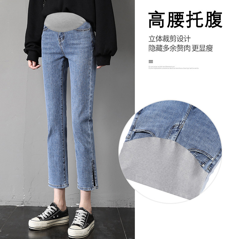 婧麒孕妇裤子春秋款外穿牛仔裤大码阔腿裤直筒长裤孕妇装不勒肚子