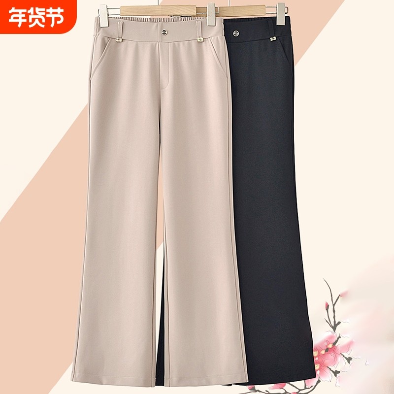 妈妈裤子春秋款松紧高腰弹力中老年女裤宽松大码直筒奶奶加绒长裤
