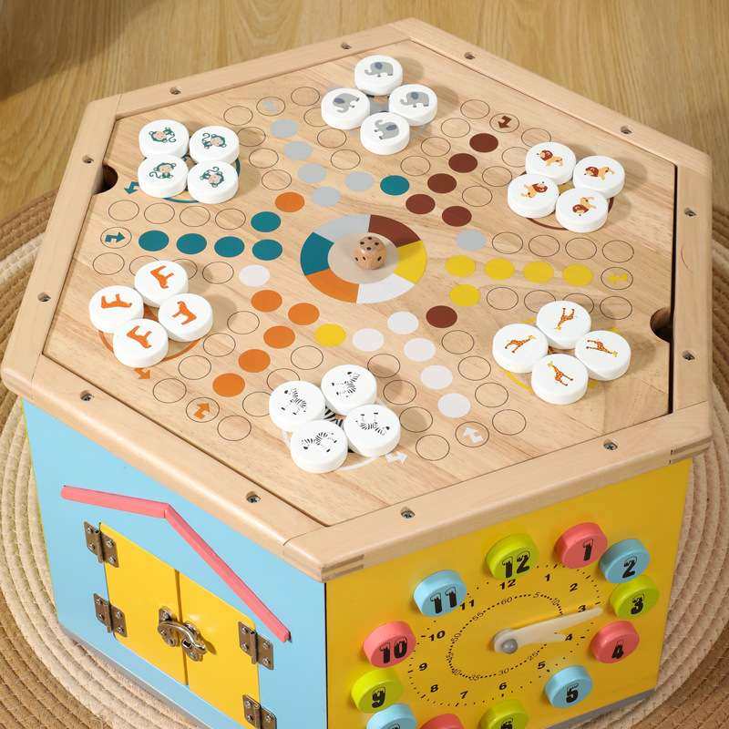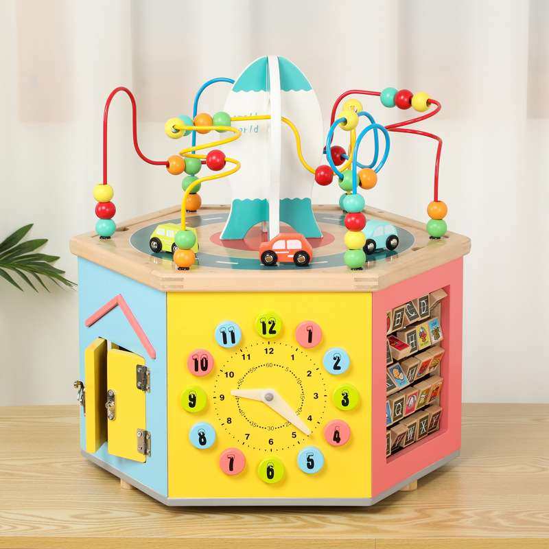 儿童木质大号百宝箱绕珠串珠游戏幼儿园早教多功能八面体忙碌教具