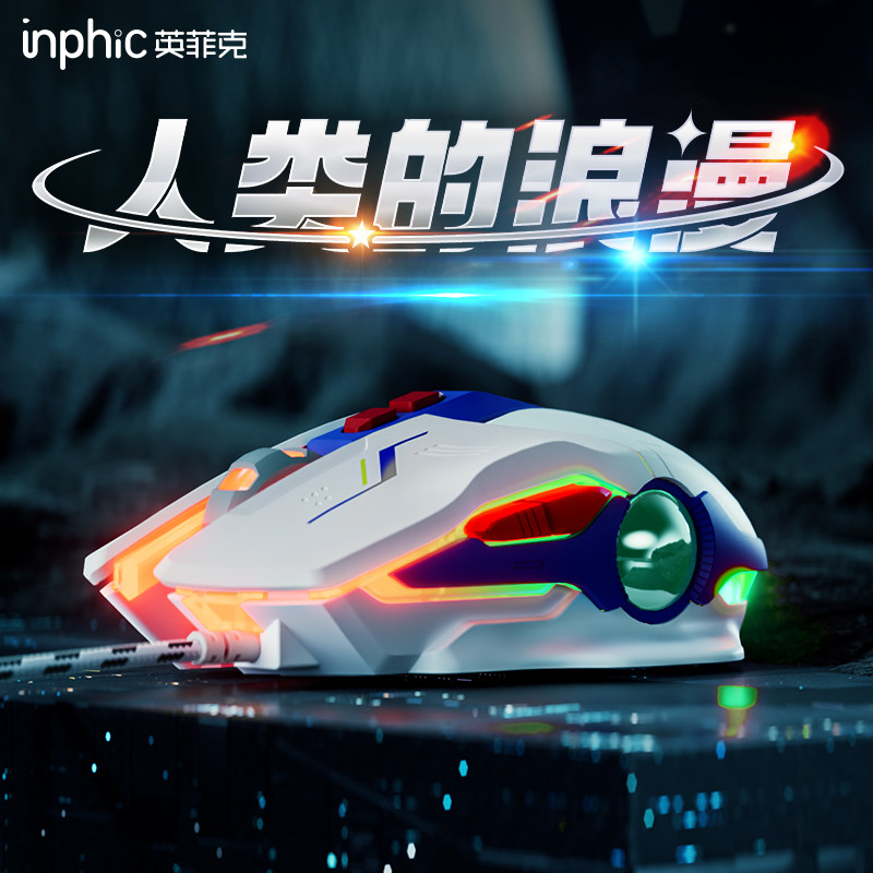 英菲克PW1有线鼠标静音游戏电竞机械宏办公usb台式笔记本电脑专用