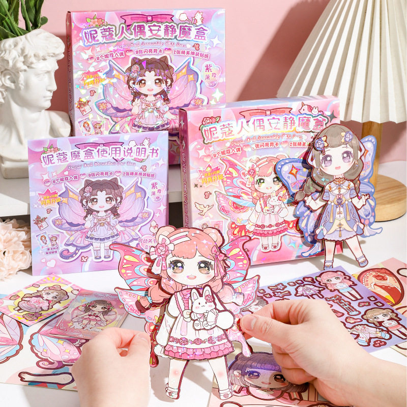 妮蔻人偶安静魔盒安静书可爱卡通换装贴纸DIY手工益智手账素材