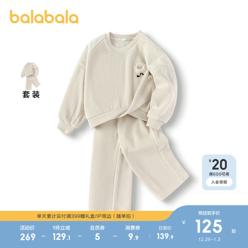 巴拉巴拉童装儿童套装女童秋冬雪尼尔两件套休闲小童简约百搭时尚
