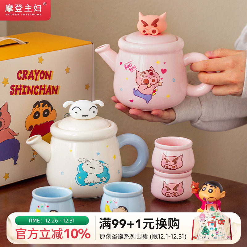 【摩登主妇&蜡笔小新】肥嘟嘟左卫门茶具泡茶壶套装杯子生日礼物