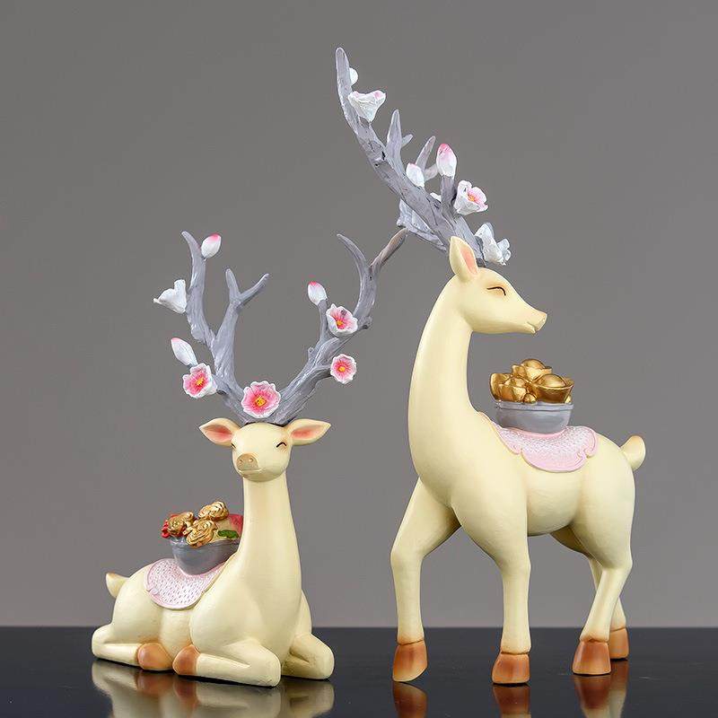 现代情侣财富鹿摆件家居客厅电视柜玄关创意酒柜房间软装饰品