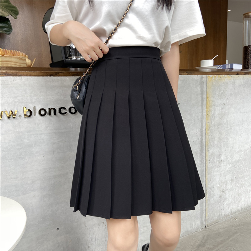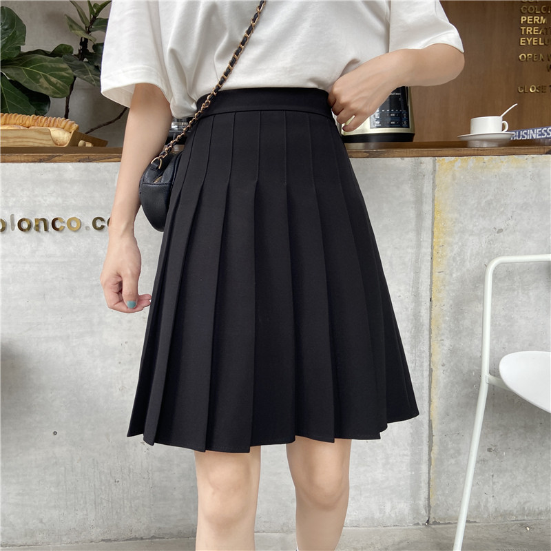 百褶裙女小个子夏季新款高腰显瘦半身裙纯色大码学院风jk短裙套装
