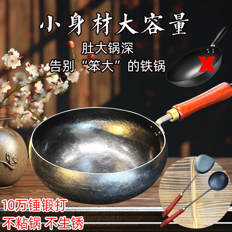 铁锅官方旗舰炒菜锅老式炒锅铁锅家用不粘锅无涂层燃气灶适用