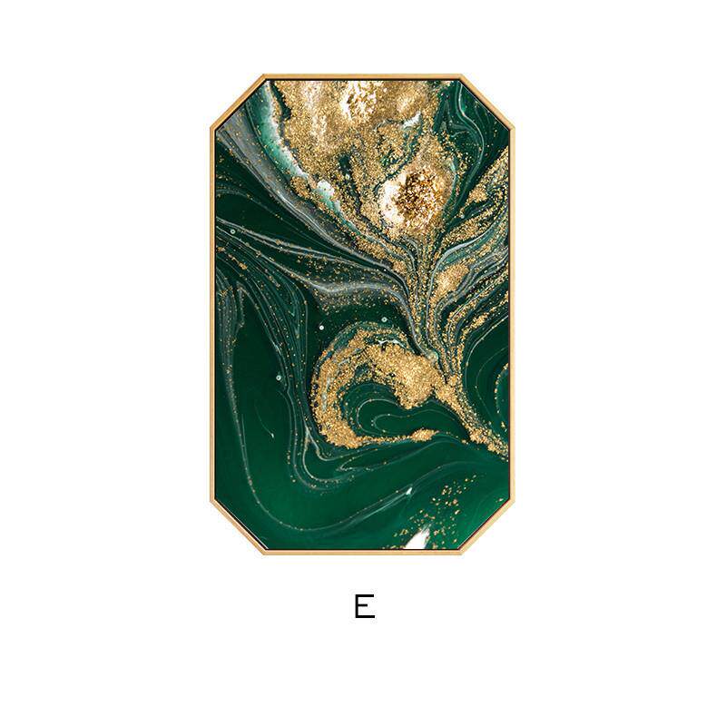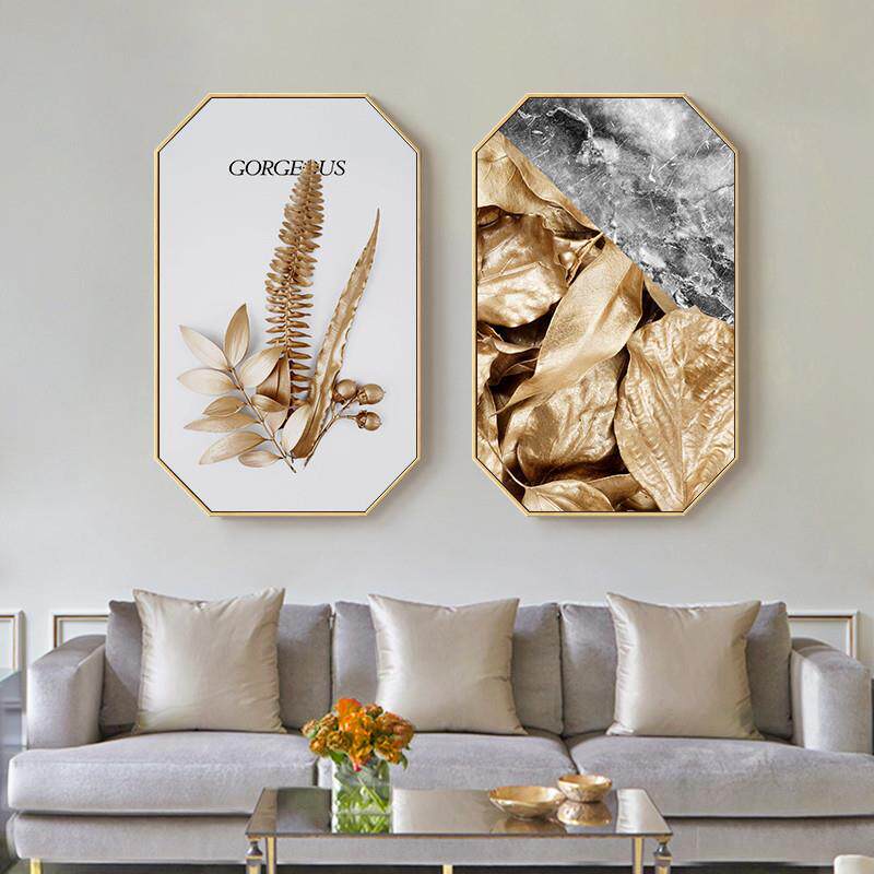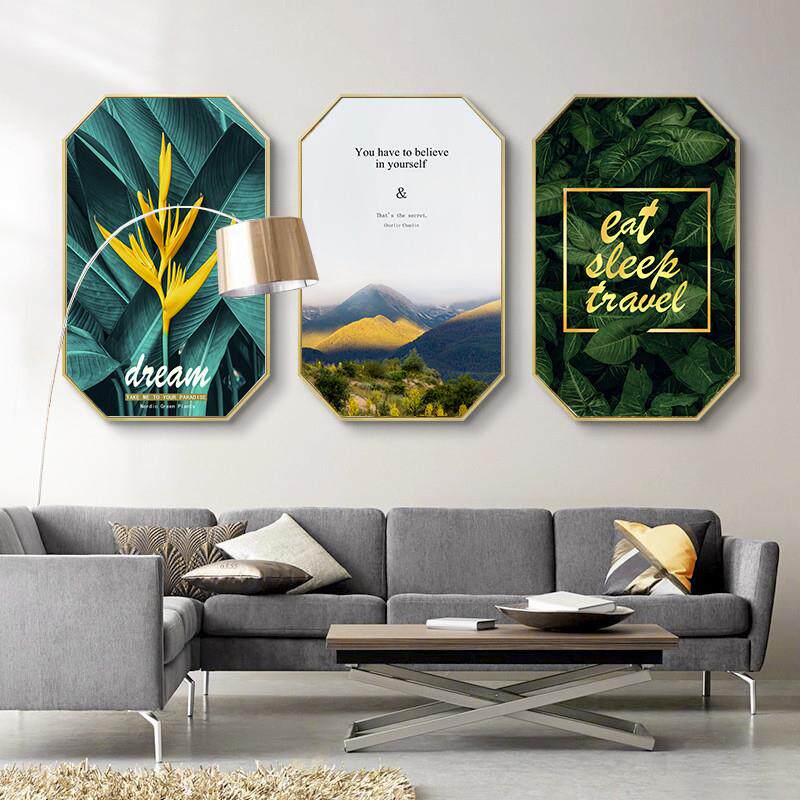 现代轻奢创意八边形餐厅装饰画绿植金色挂画风景壁画艺术装饰画