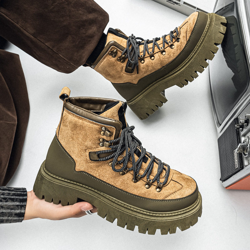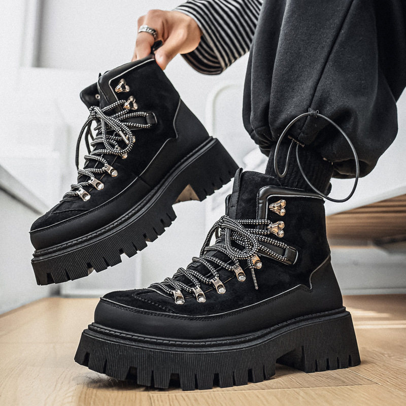 秋冬季新款户外厚底增高工装靴子男士劳保潮鞋马丁鞋跨境大码男鞋