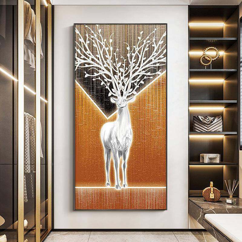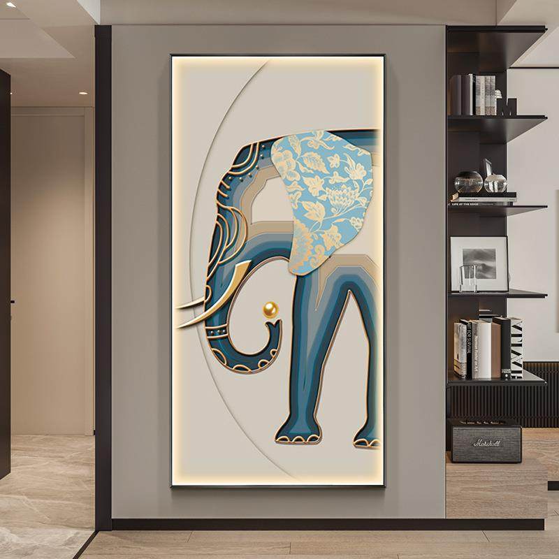 入户竖版大象壁画走廊大气玄关装饰画现代客厅过道墙面上轻奢挂画