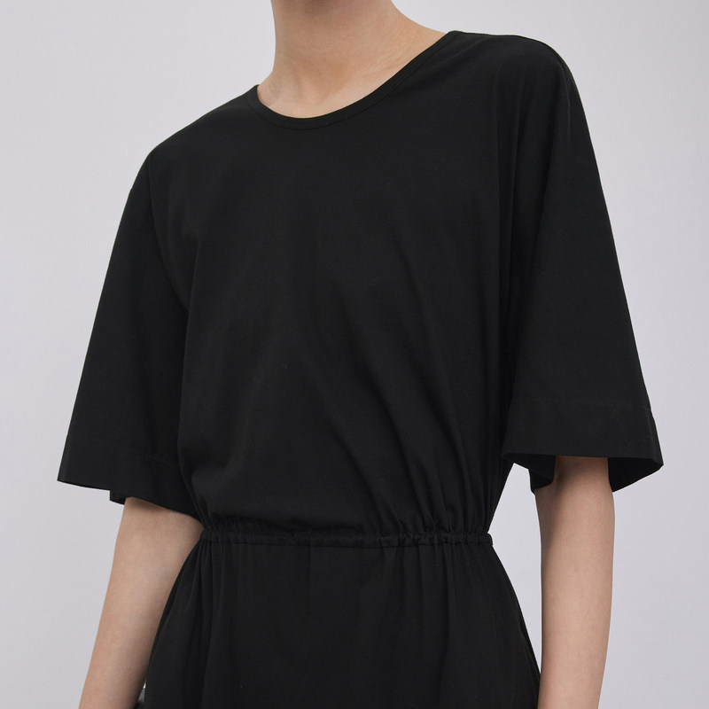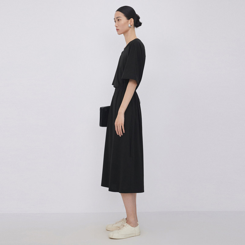 LESS春秋棉质裙子女休闲简约收腰基础款短袖连衣裙2N7G10650