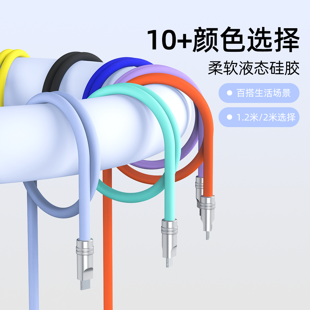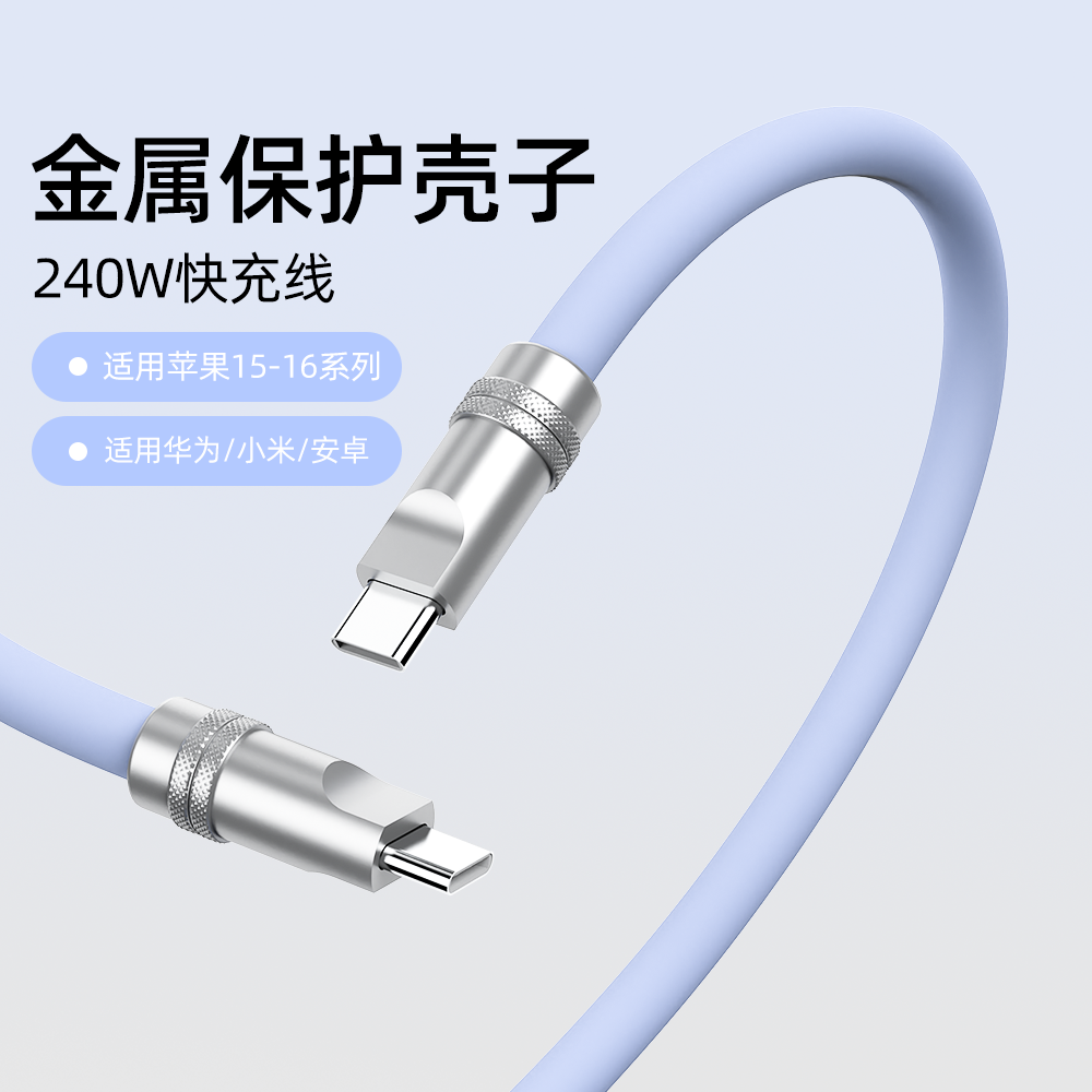 彩色柔软硅胶 金属保护壳插头 240W兼容快充