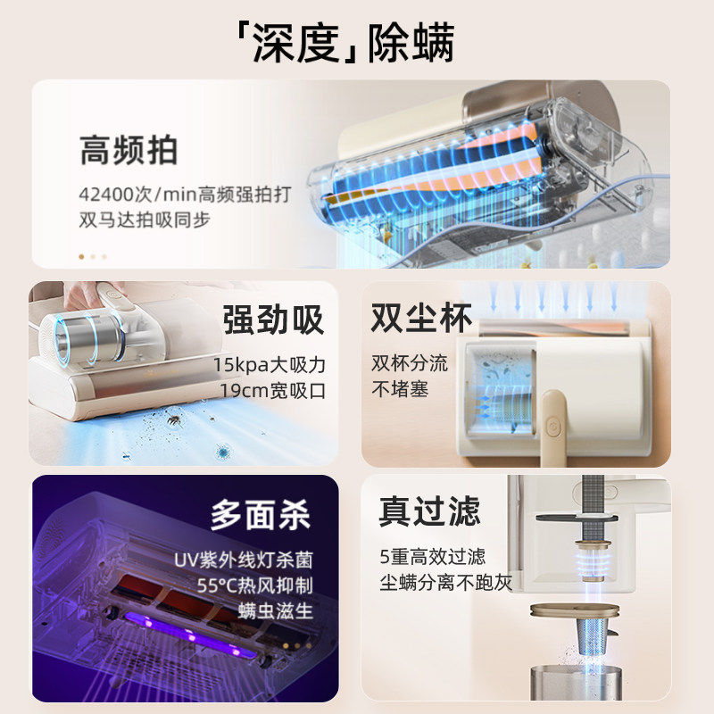 小熊除螨仪家用床上吸尘器滚刷大吸力紫外线杀菌除湿螨虫神器双杯