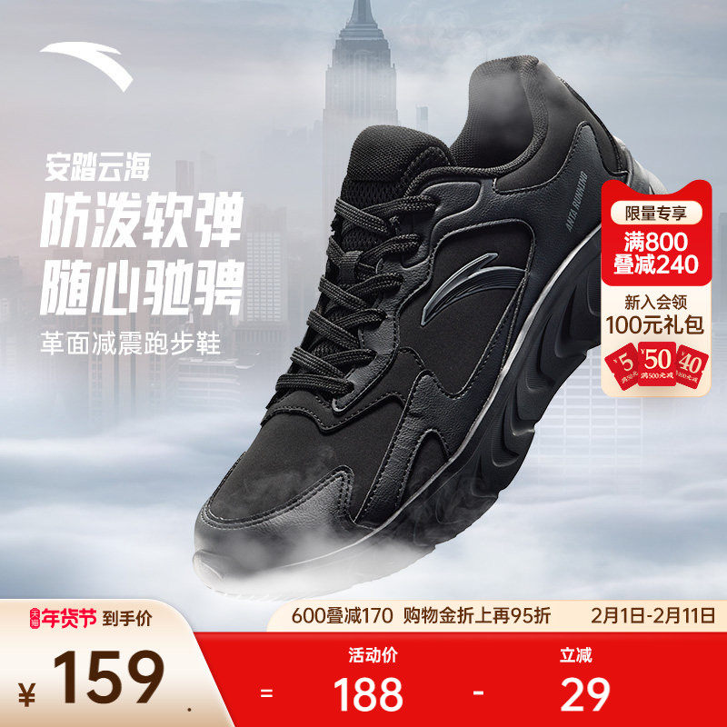 安踏云海丨轻质不累脚防泼水跑步鞋男鞋春季舒适软底革面运动鞋