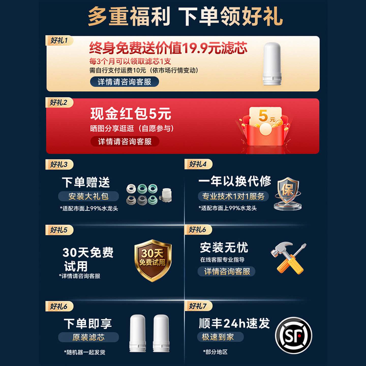 净水器家用直饮厨房自来水超滤净化水机前置活性炭五级过滤器