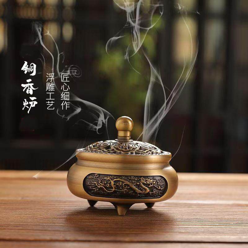 雕花龙凤小三足纯铜香炉沉檀香炉仿古禅意茶道盘香熏香炉香薰炉