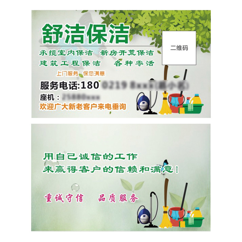 家政名片设计制作保洁钟点工安装电工木工装饰装修铜版纸服务卡片
