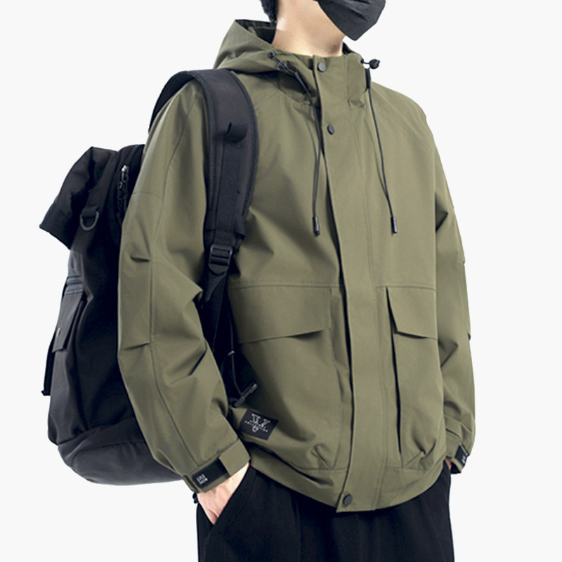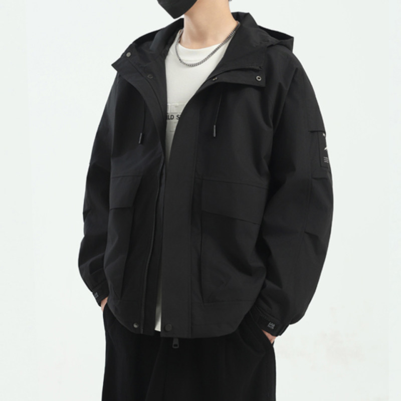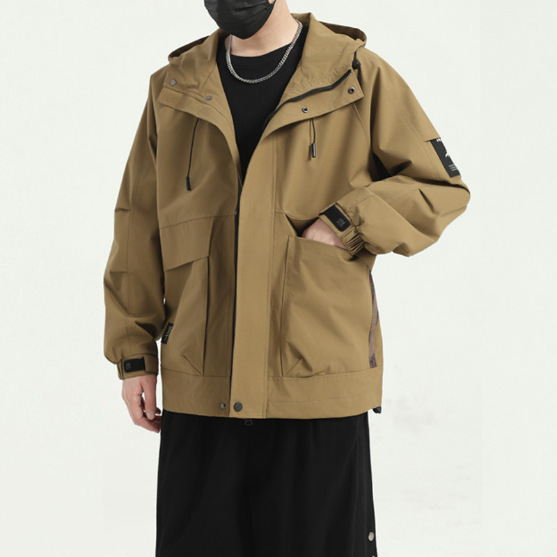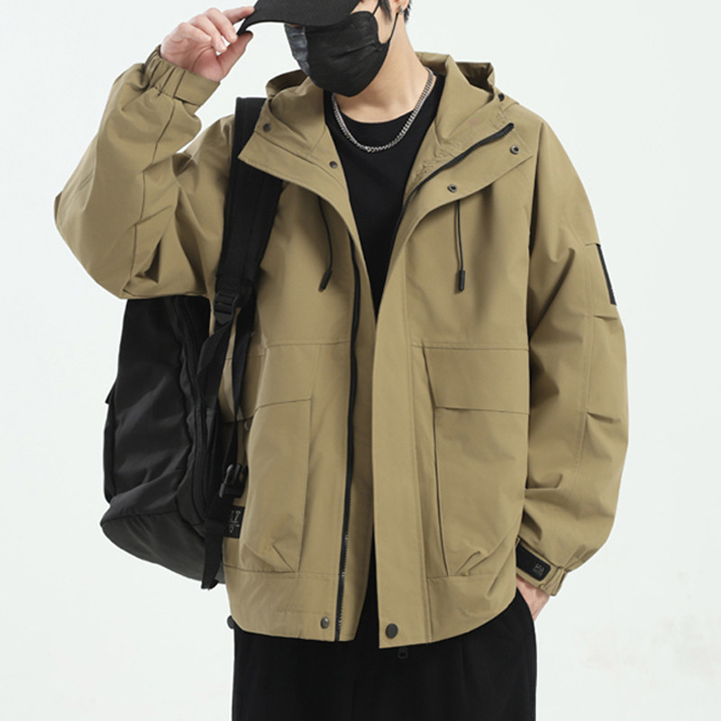 2026新款春秋男士连帽防风休闲胖子夹克潮牌男装户外大码工装外套
