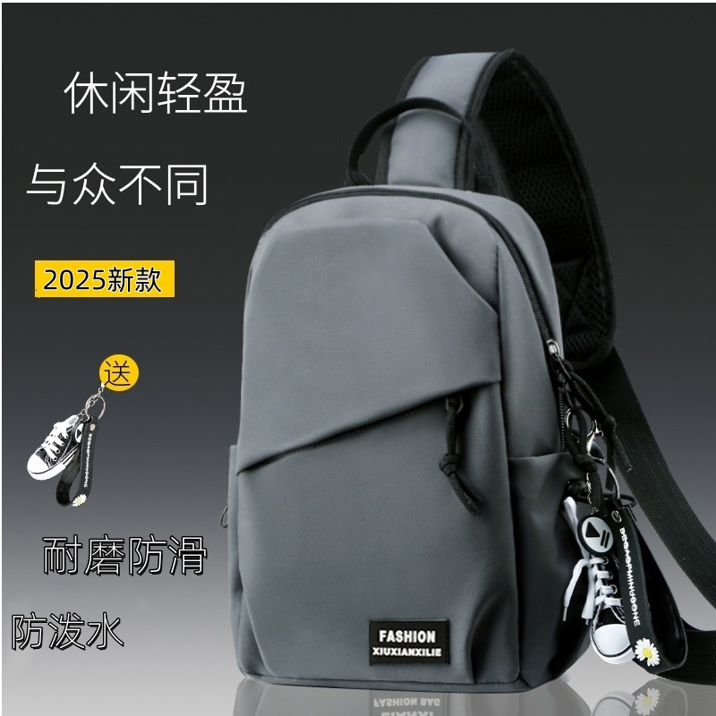 2025新款男士斜挎包防水运动单肩包休闲大容量胸包磁吸扣通勤时尚
