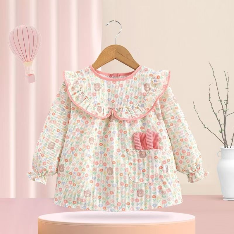 宝宝罩衣秋冬防水防脏洋气外穿儿童围裙罩衫幼儿园吃饭围兜反穿衣