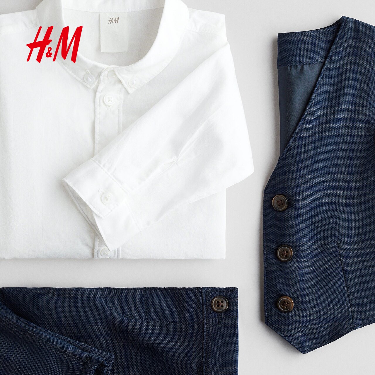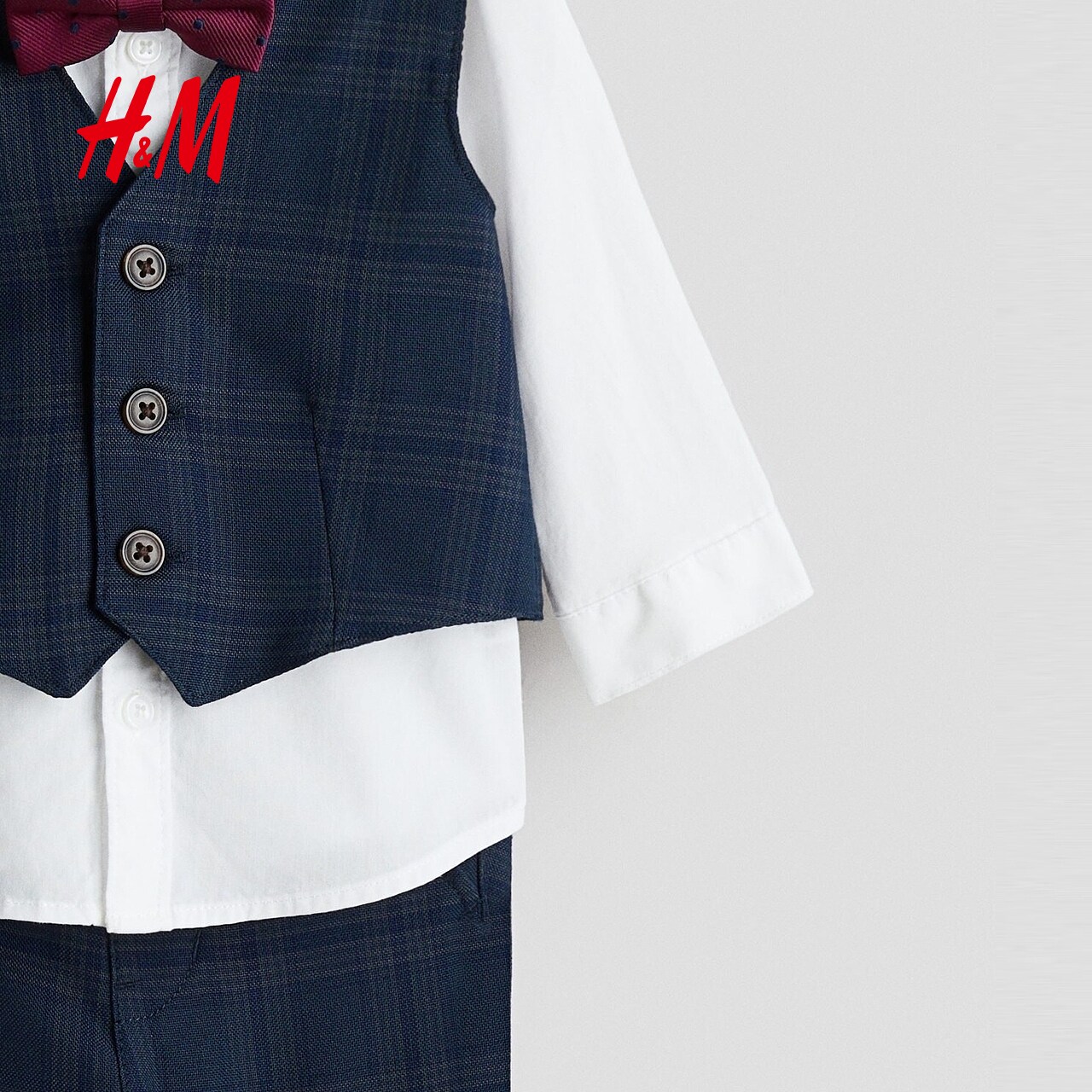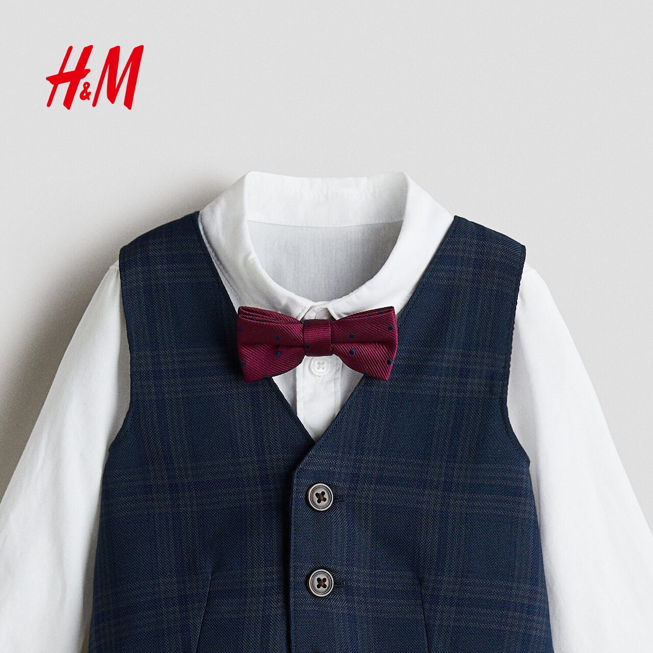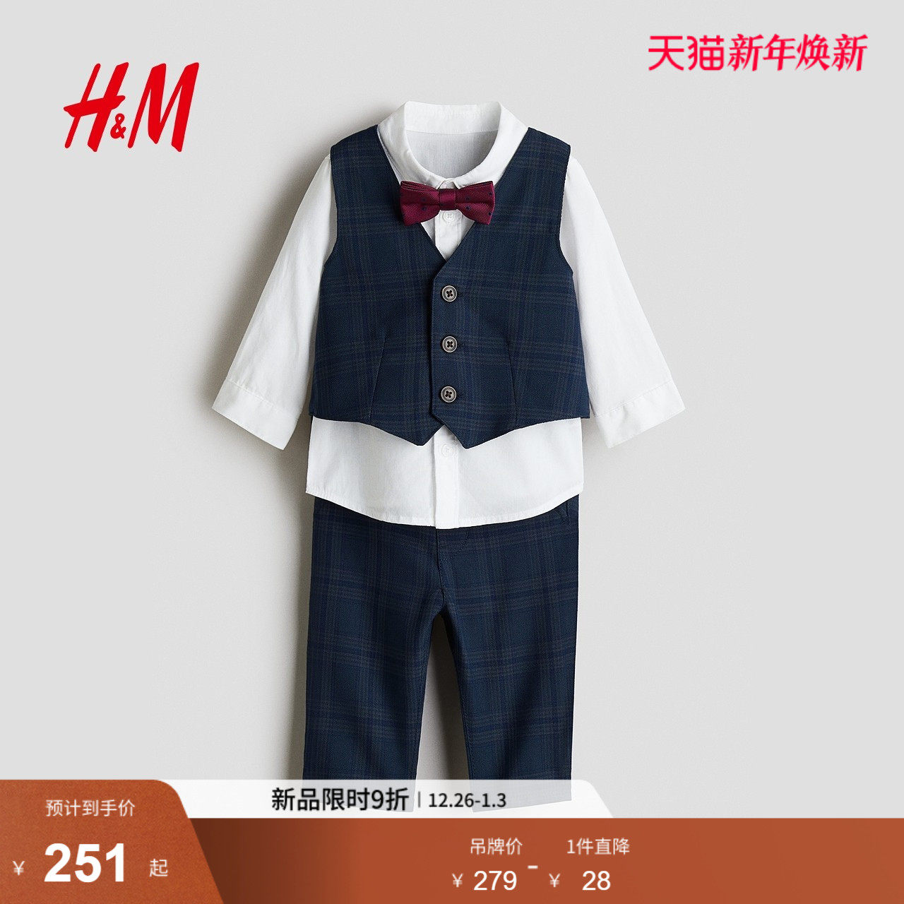 HM童装男婴套装4件式2025冬季节日正装格纹马甲长袖长裤1157034