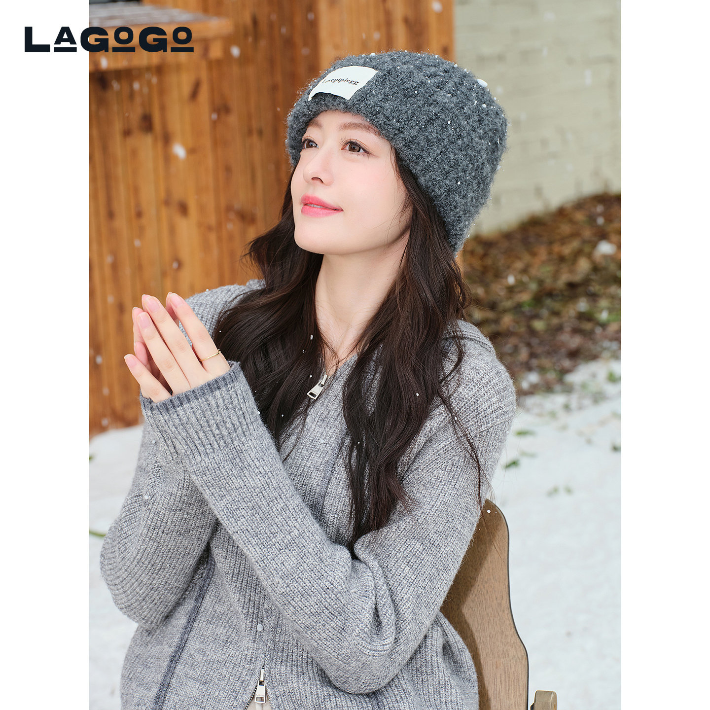 LAGOGO松弛针织衫女拉谷谷2025年冬新款含羊毛连帽外套OCMM869D24