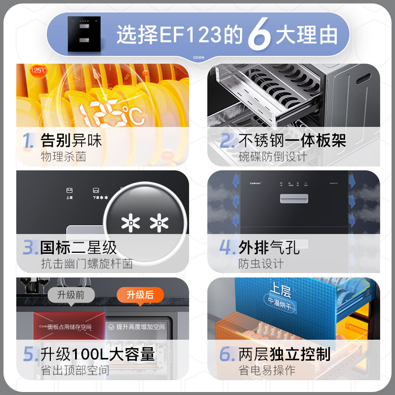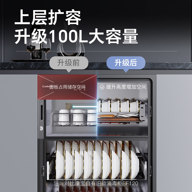 康宝新款EF123家用厨房嵌入式消毒碗筷柜升级不锈钢一体板架100升