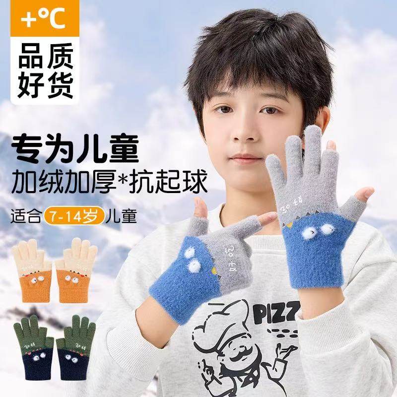 儿童手套男童可写字冬季保暖小孩五指翻盖男孩学生半指写作业冬天