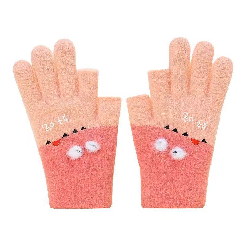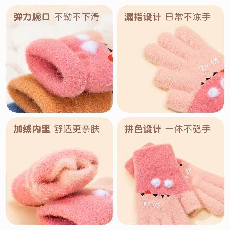 2025冬季新款保暖儿童手套小恐龙防滑五指户外运动防寒手套宝宝冬