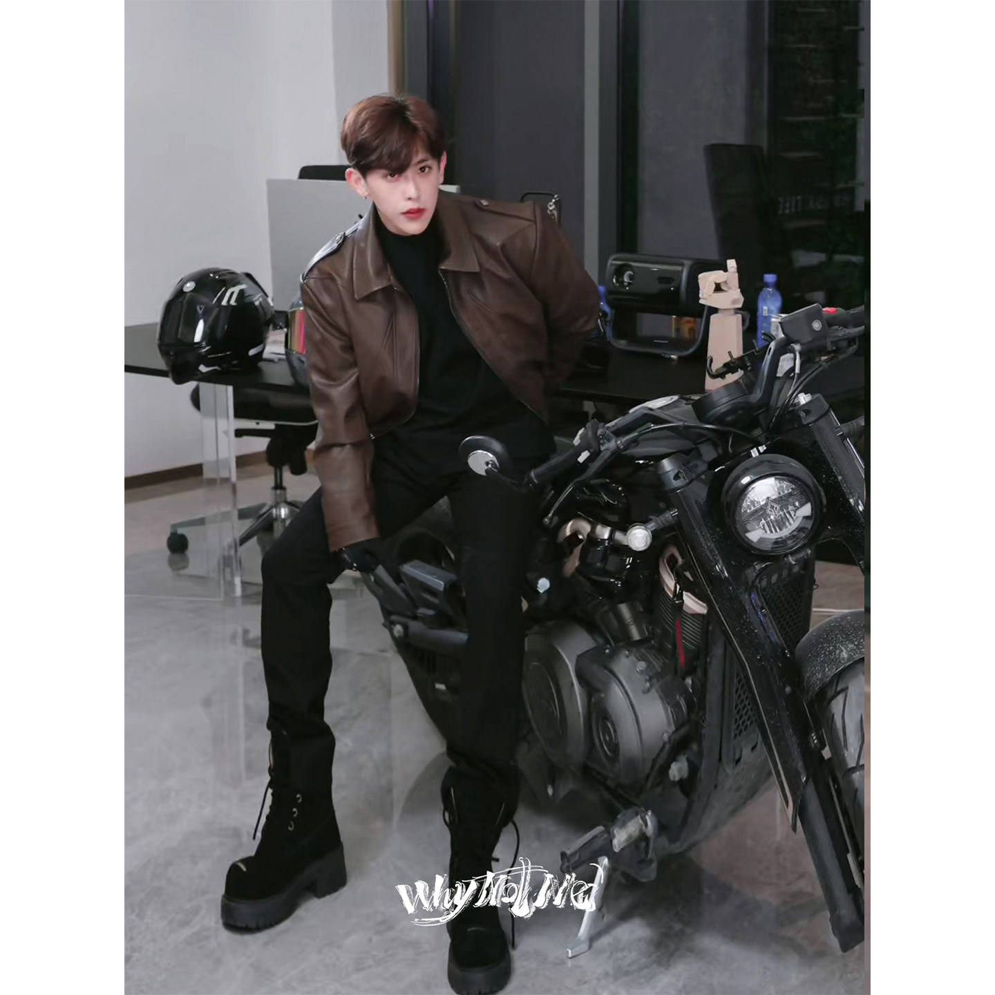 【潮WOO专属】RAPPEYE轮廓机车皮衣外套男春秋PU皮质复古情侣夹克