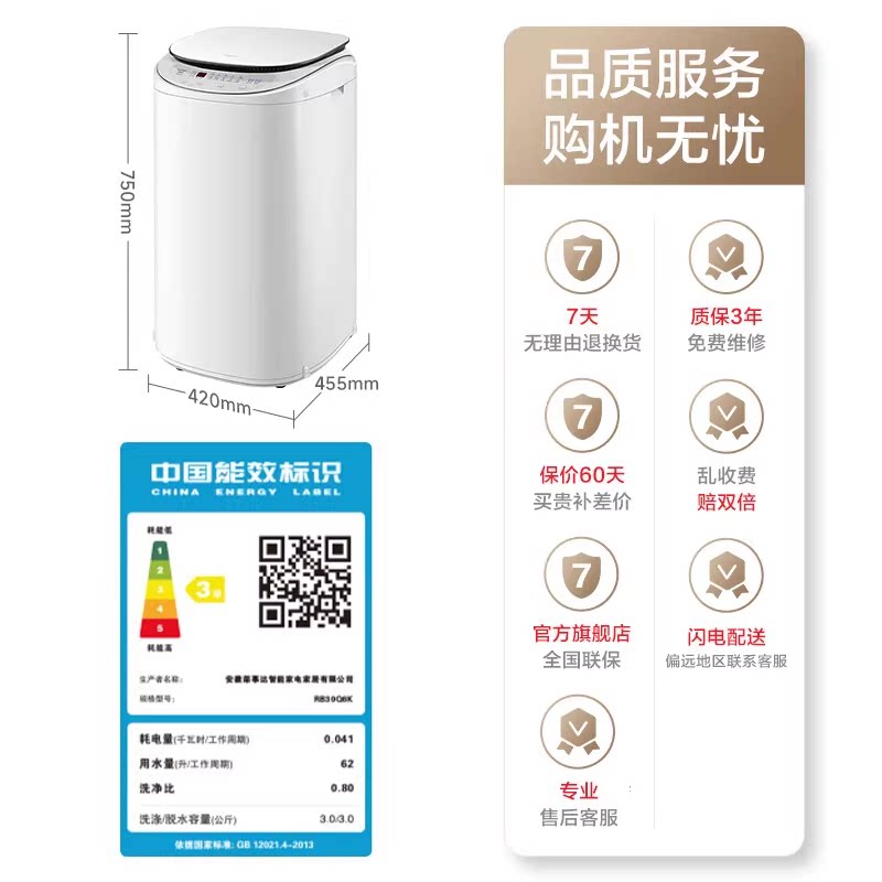 荣事达小型迷你全自动洗衣机3KG母婴杀菌宝宝用带烘干洗烘一体机