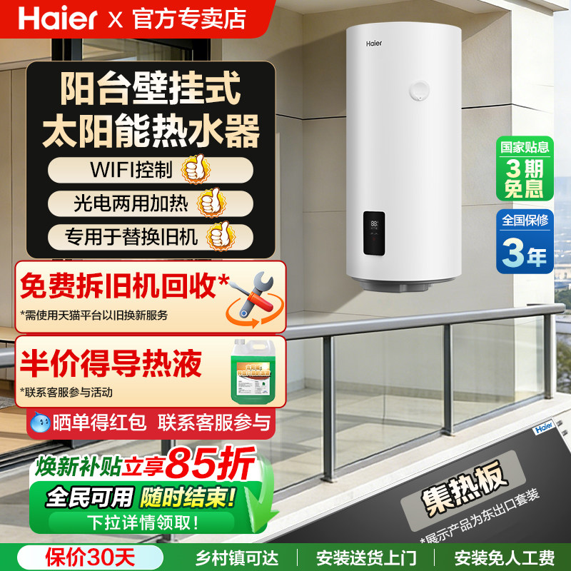 海尔太阳能热水器平板阳台壁挂式光电两用小区高层家用一体电加热
