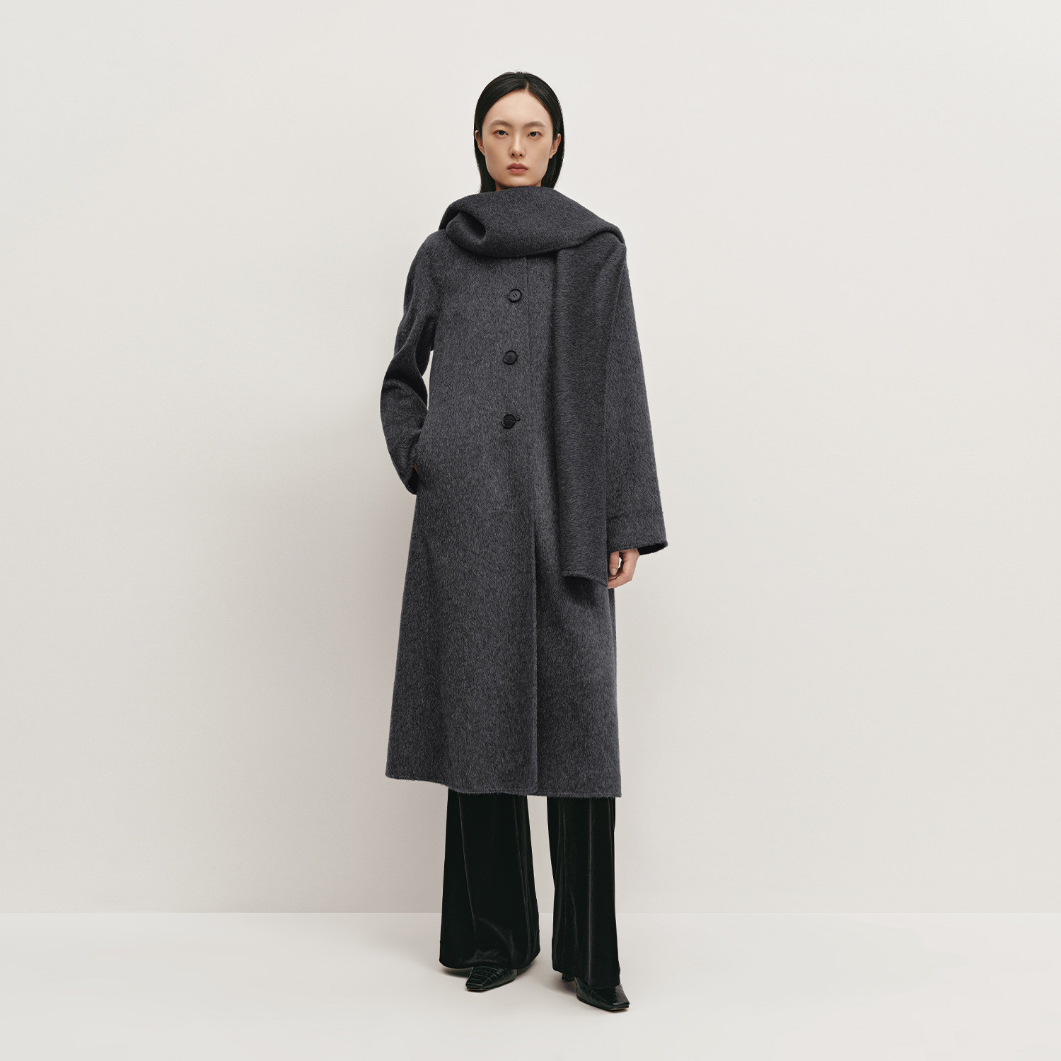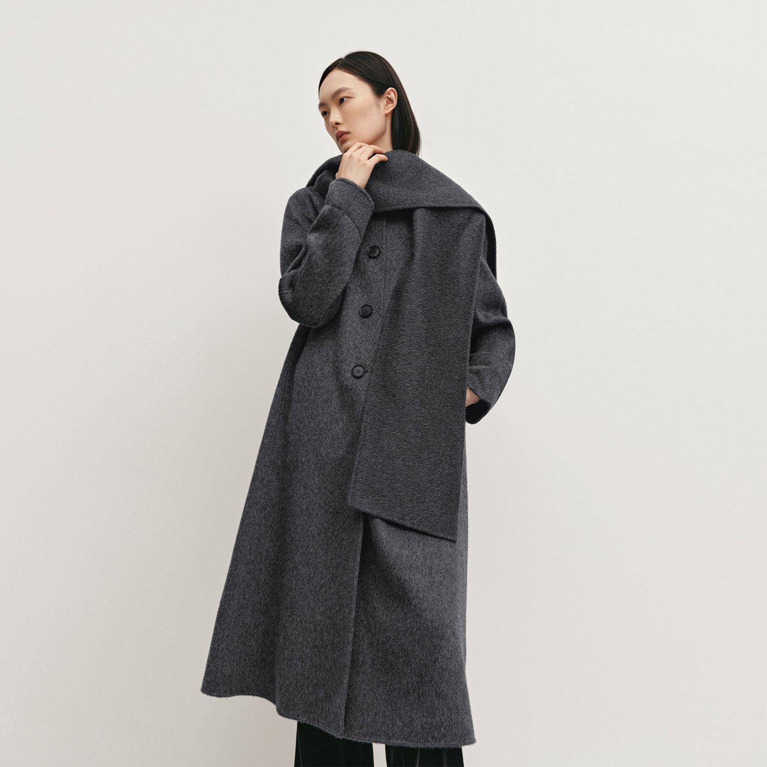 单排扣设计 羊毛面料 随附围巾