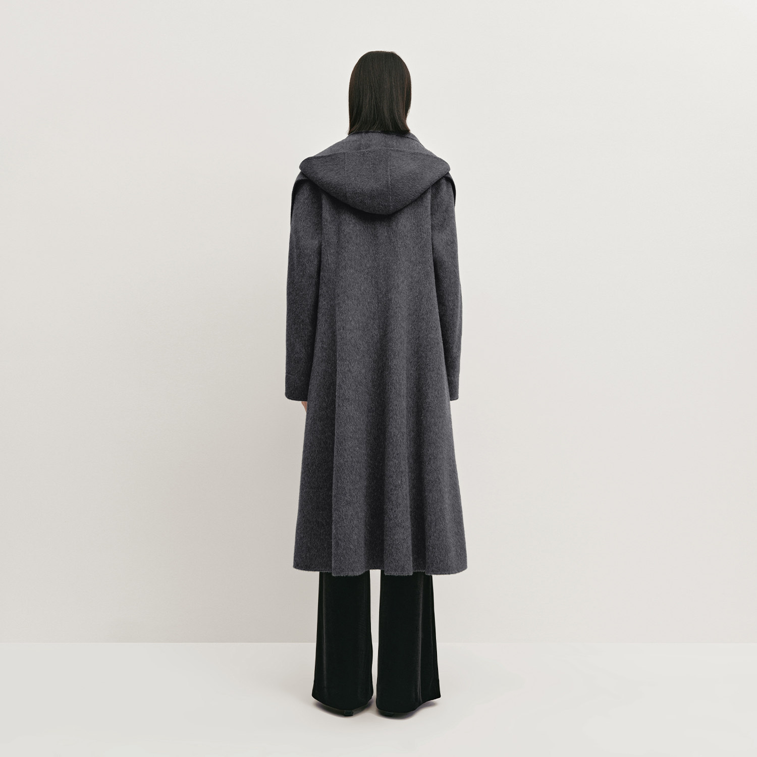 RUISHI芮时重磅驼绒桑蚕丝羊毛慵懒两穿领灰色毛呢大衣秋冬外套女
