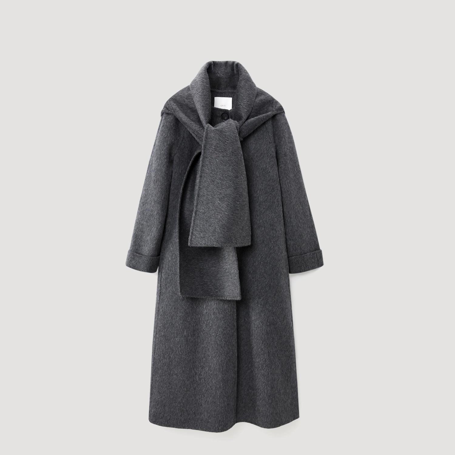OVV秋冬热卖女装随附围巾连帽单排扣羊毛双面呢大衣