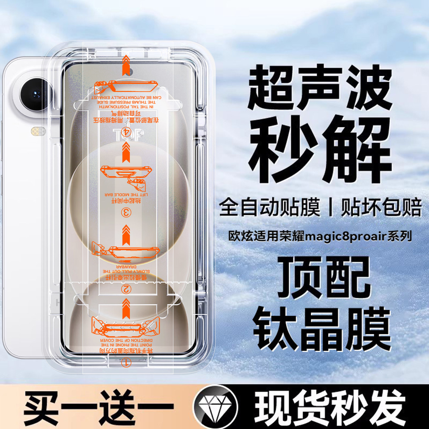 【新巨烯AR无纹秒贴】欧炫适用荣耀magic8钢化膜magic8ProAir手机膜honor新款magic6/7pro全覆盖RS保护解锁用