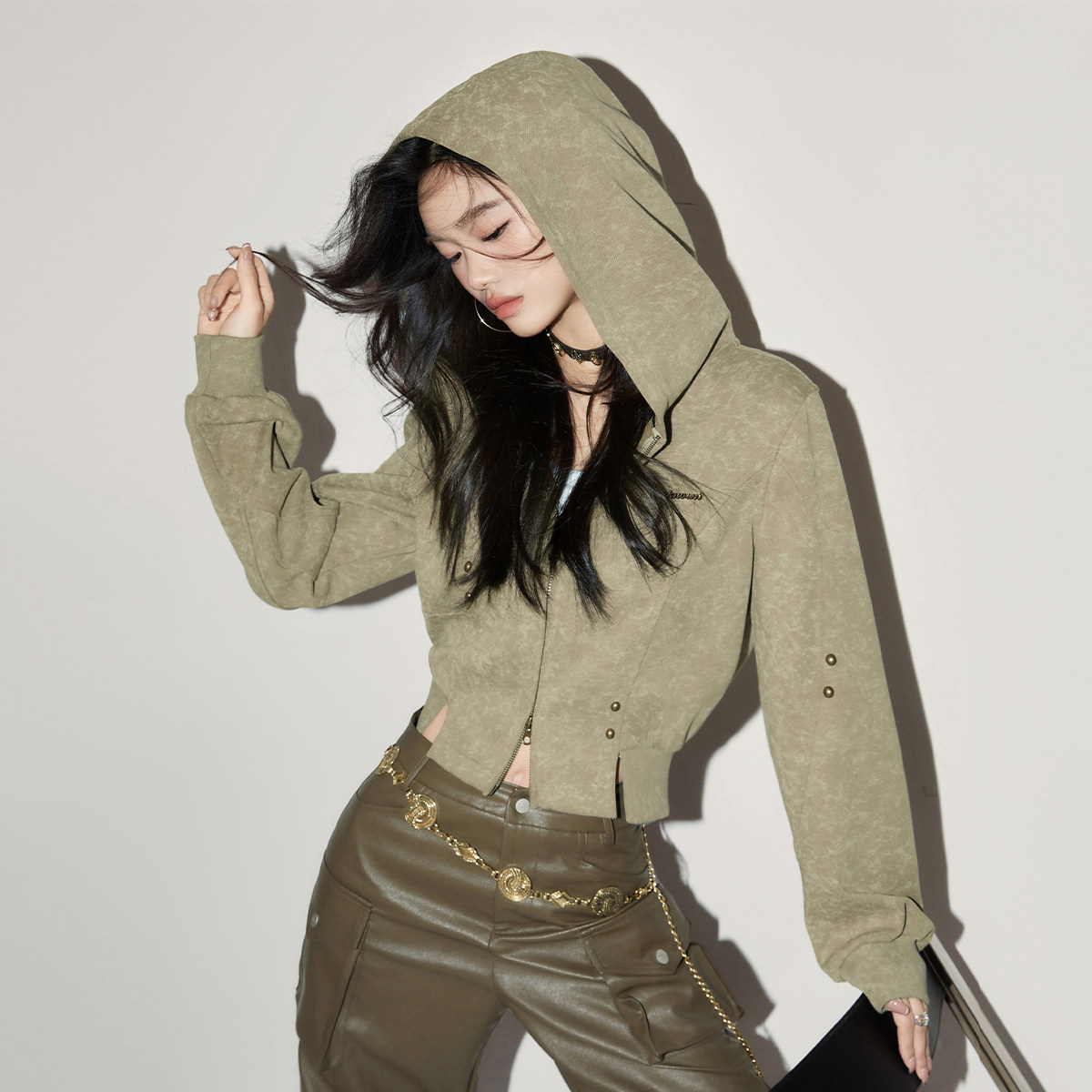 三福卫衣开衫2025新款秋季连帽情侣款外套宽松慵懒风灰色上衣女装