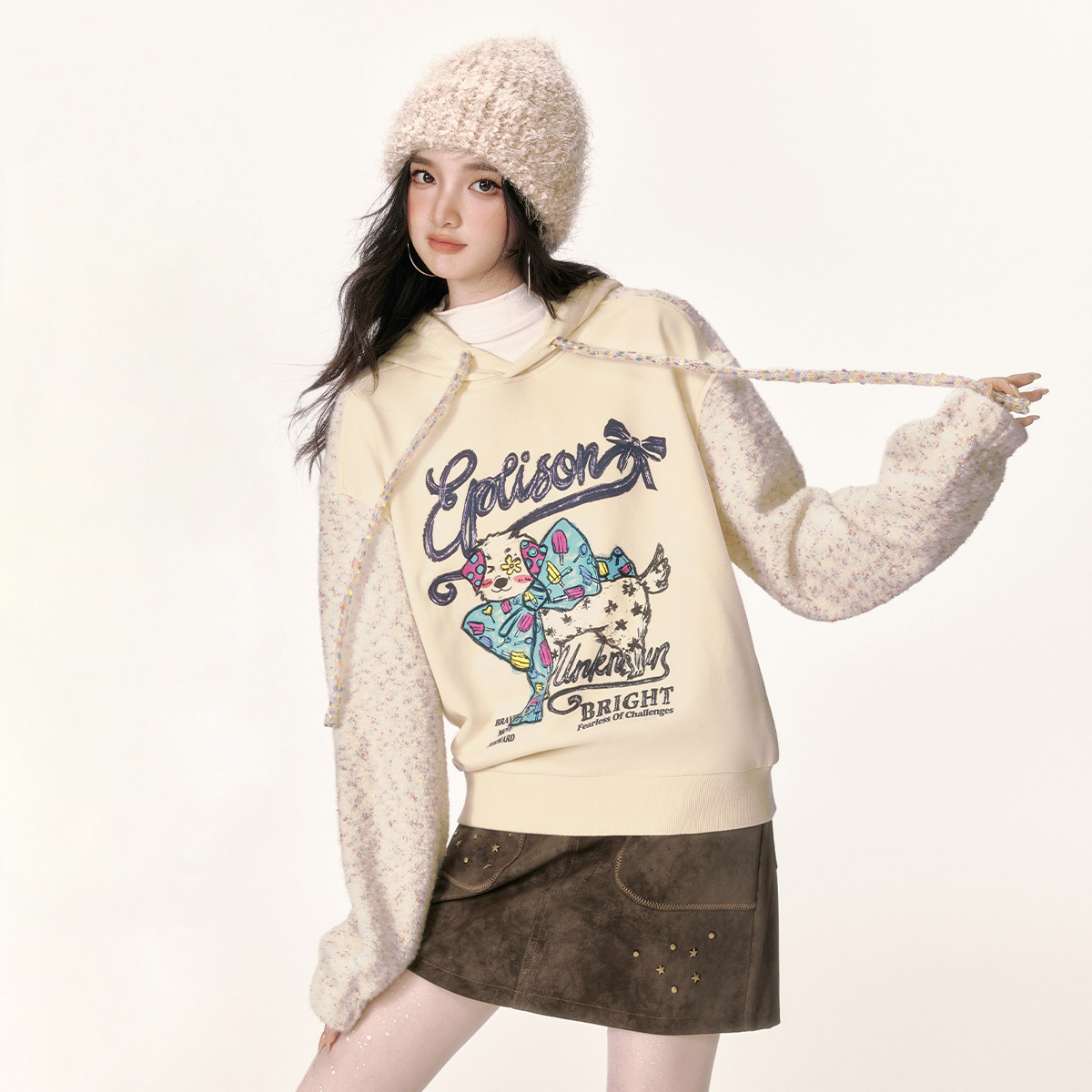 森马史努比系列卫衣女中长款假两件女装冬季外套摇粒绒连帽上衣