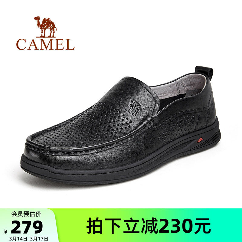 骆驼男鞋2026夏季新款休闲皮鞋男士防滑镂空透气真皮商务爸爸鞋子