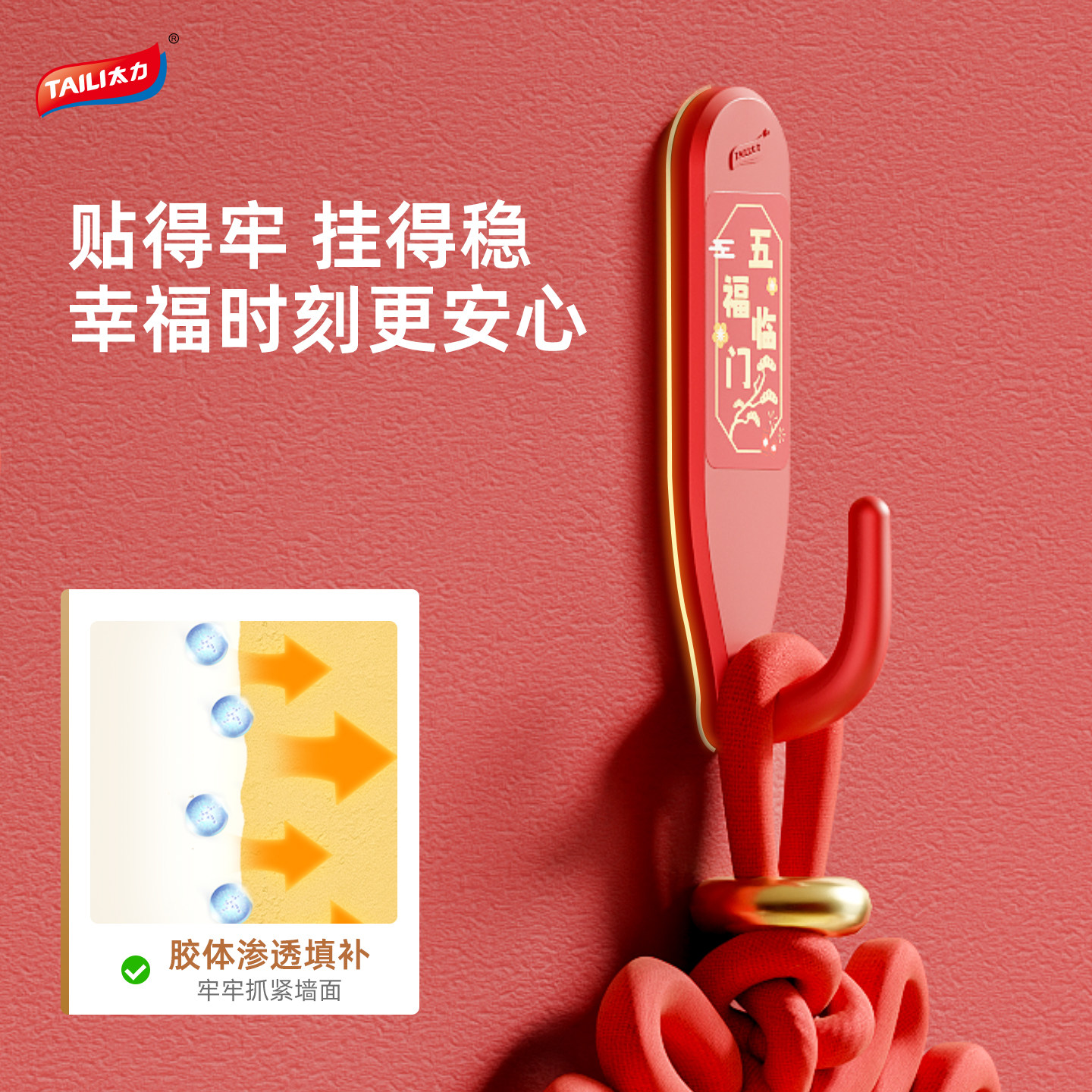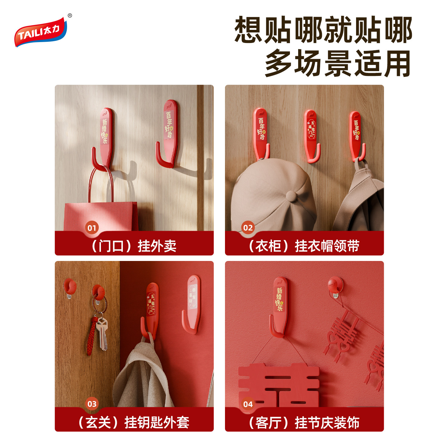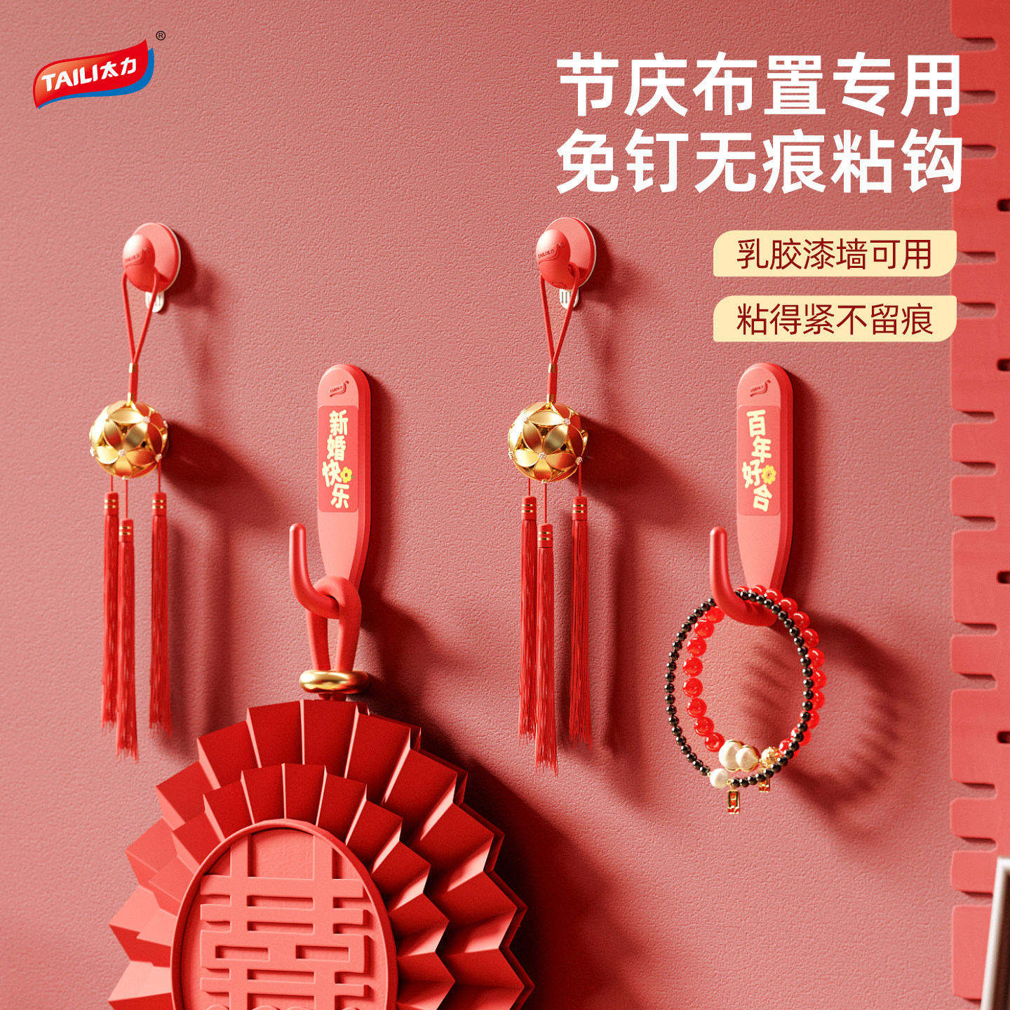 太力红色挂钩结婚喜庆免打孔婚房布置福字中国结专用强力无痕粘胶