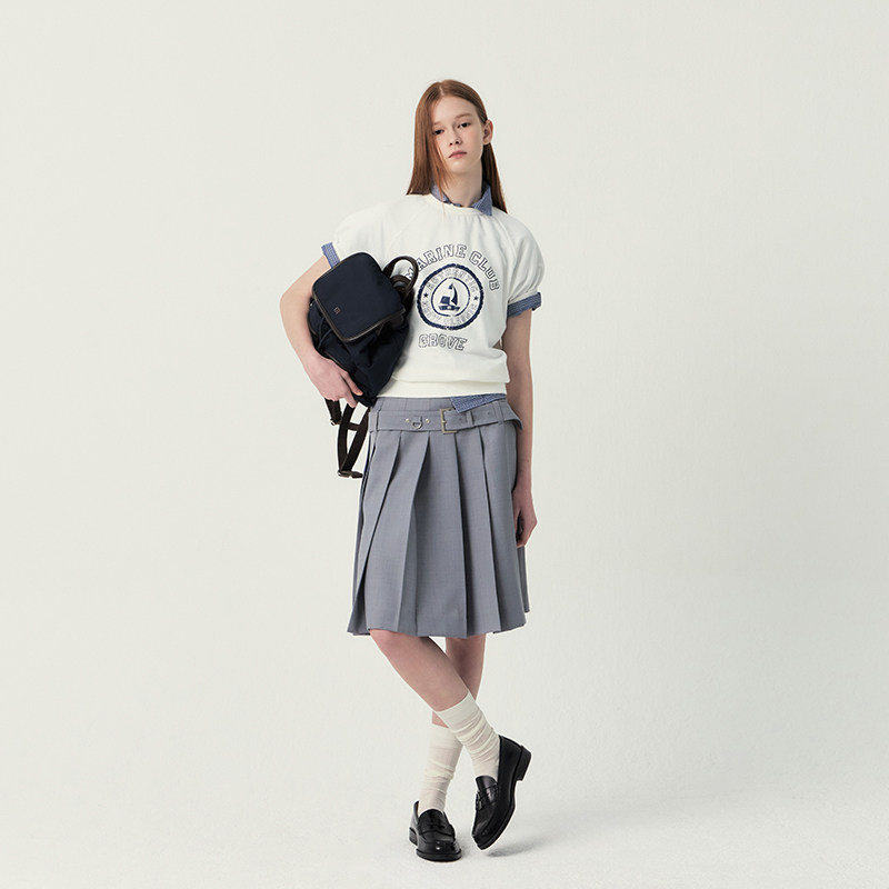 GROVE官方旗舰店女SS春夏款百褶腰盼梭织短裙 GS5SK09M