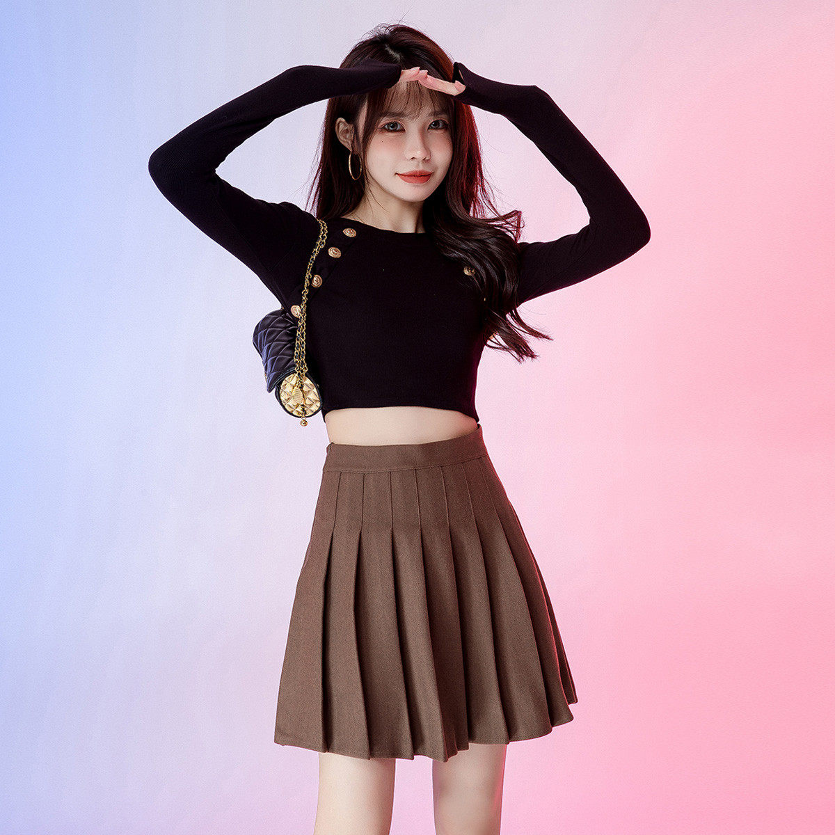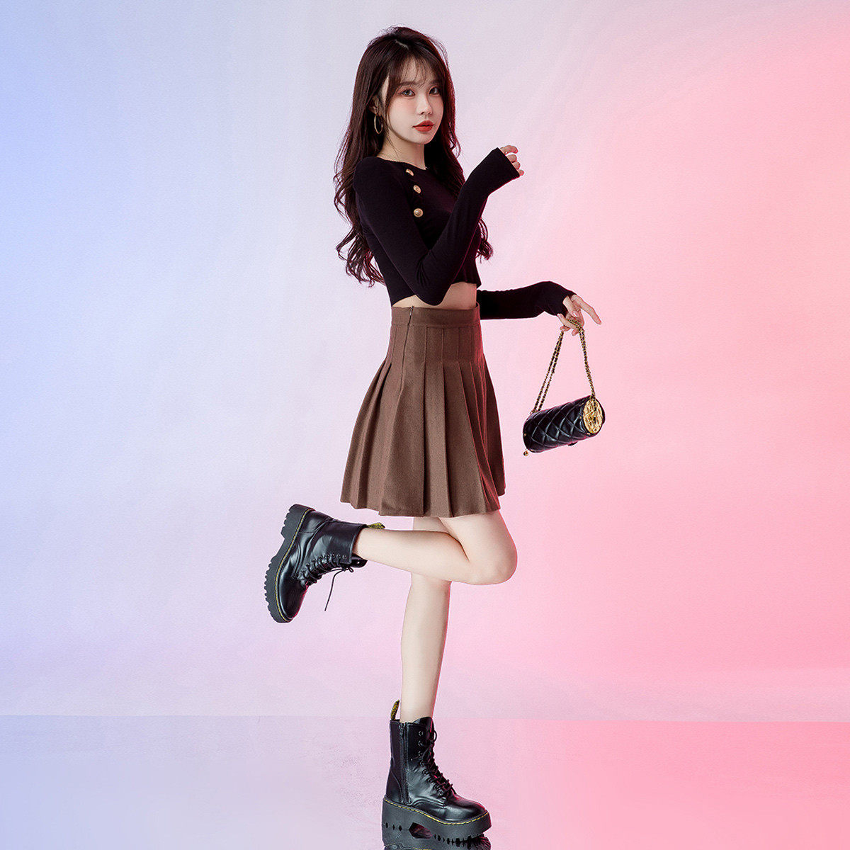 【所有女生的衣橱直播间】极尔斯 斜纹半身裙/高领T恤