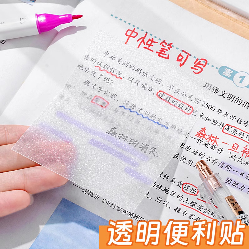 透明便利贴学生用便签纸考研划重点标记做笔记初中生专用防水粘性强速干高颜值可撕办公用便签贴纸留言记事贴