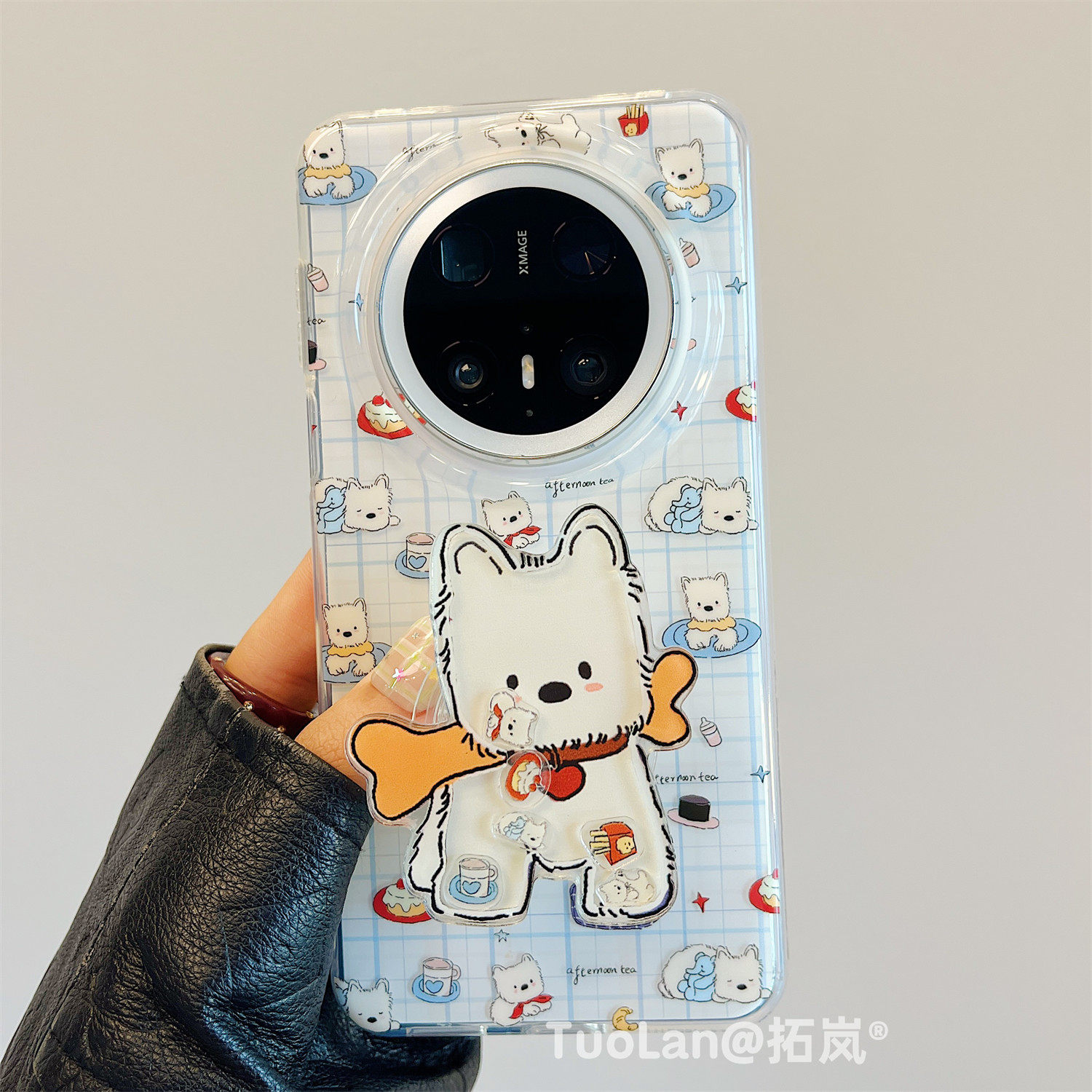 拓岚 适用华为mate70pro+新款手机壳双层日韩格纹卡通西高地摇摇乐支架mate60pro挂绳pura70/80pro硅胶防摔女
