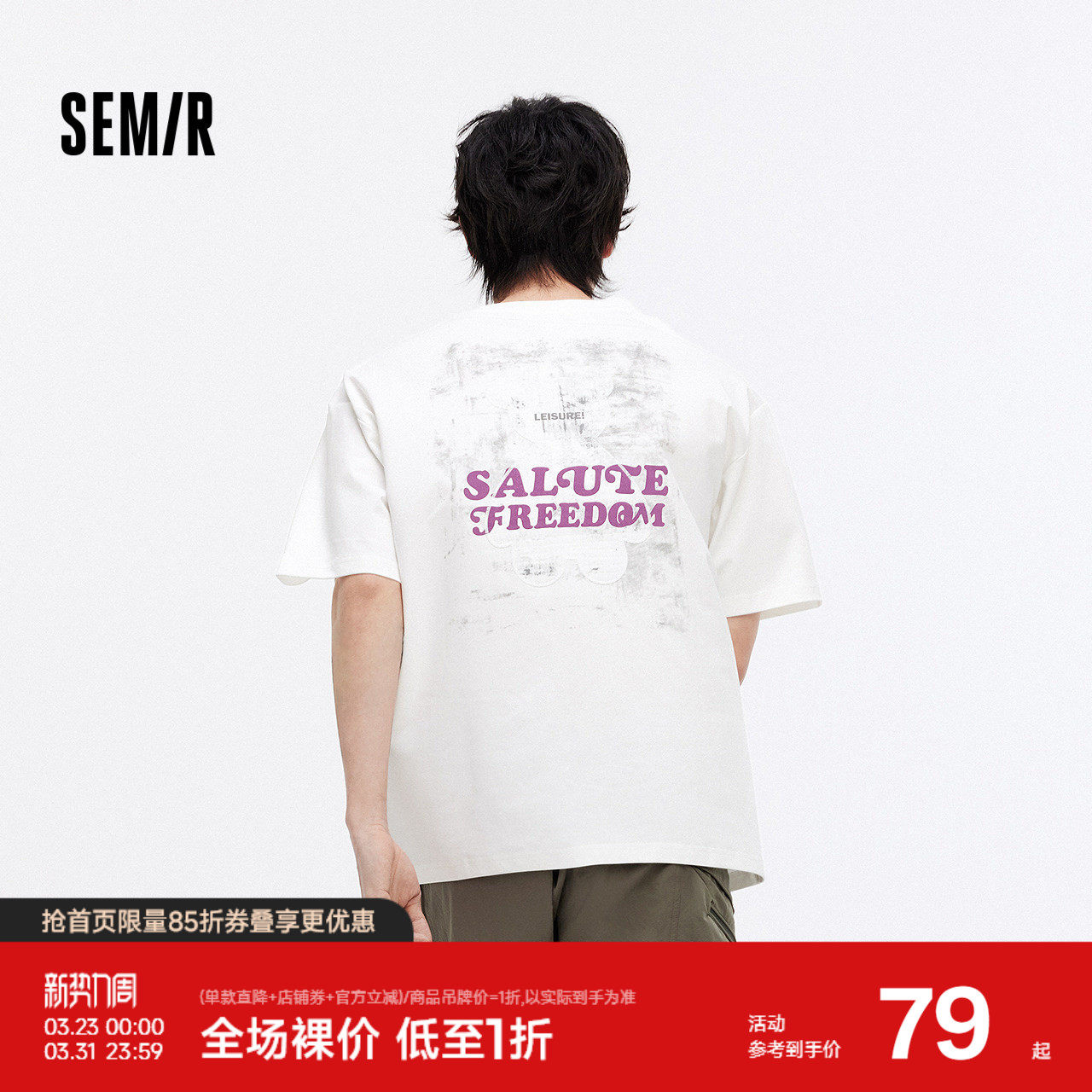 森马短袖T恤男夏季街头创意小熊针织衫字母撞色绣花流行宽松上衣