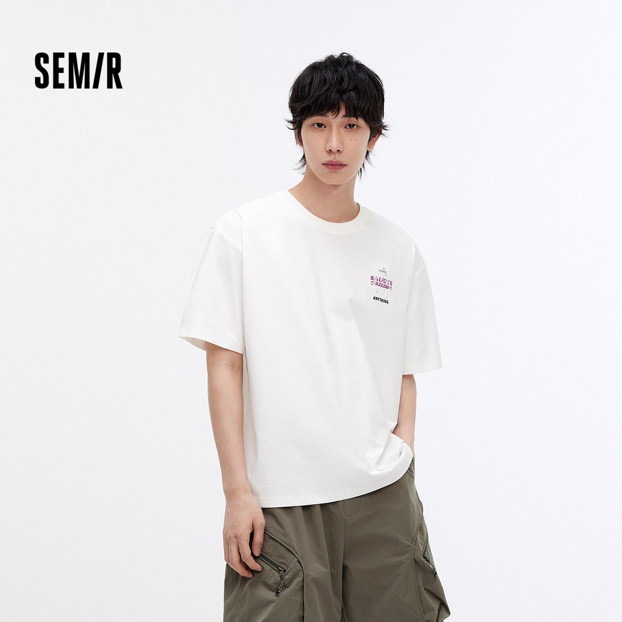 森马短袖T恤男装新款纯棉半袖情侣纯白圆领凉感白t休闲打底衫贴身