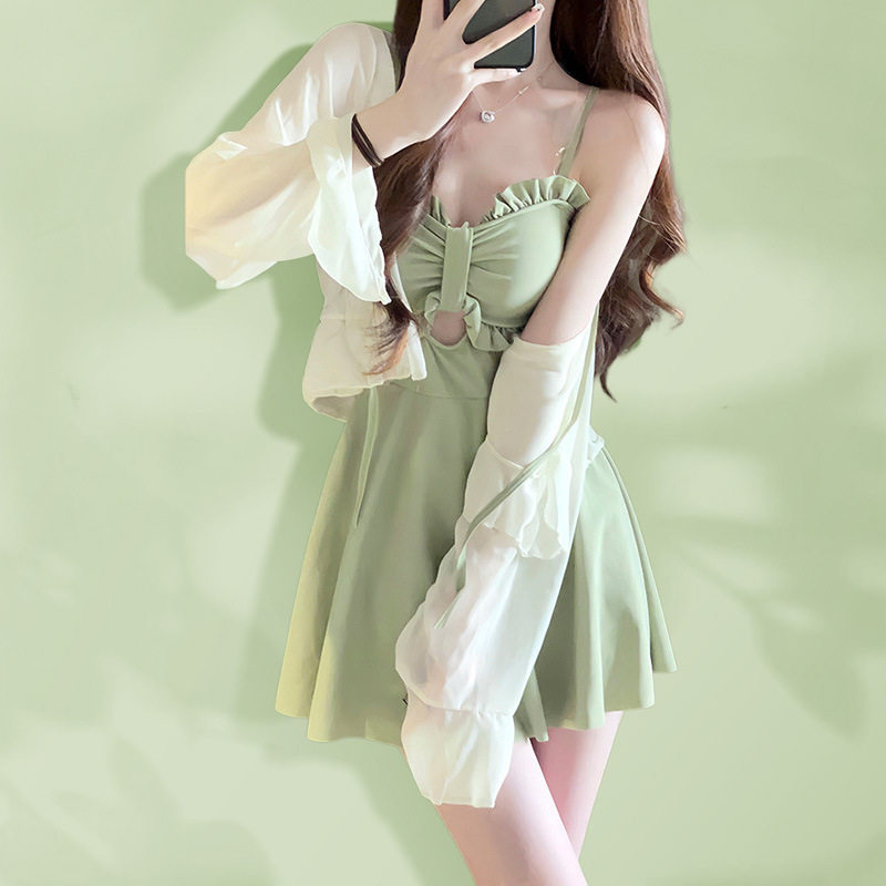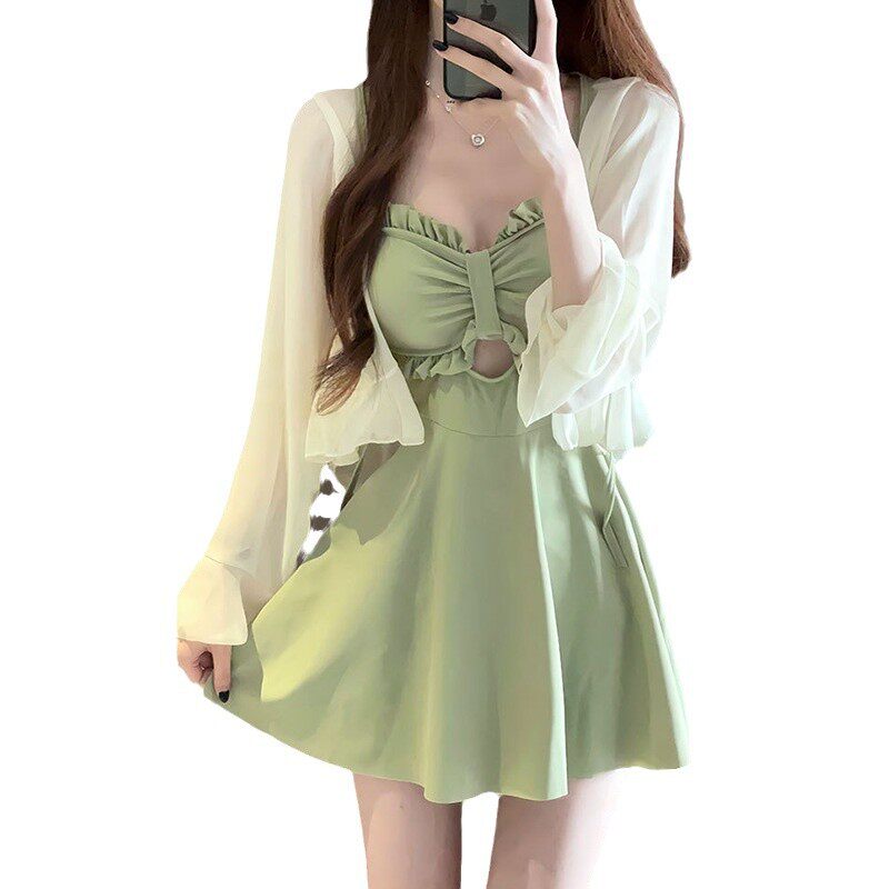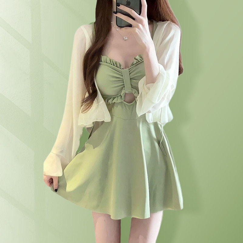 游泳衣女连体保守防晒罩衫显瘦遮肉性感网红高级感纯欲泡温泉泳装