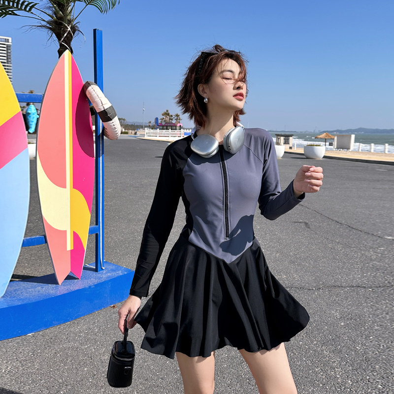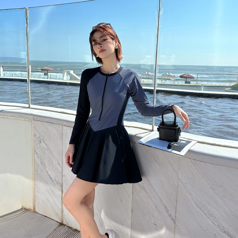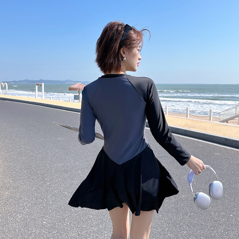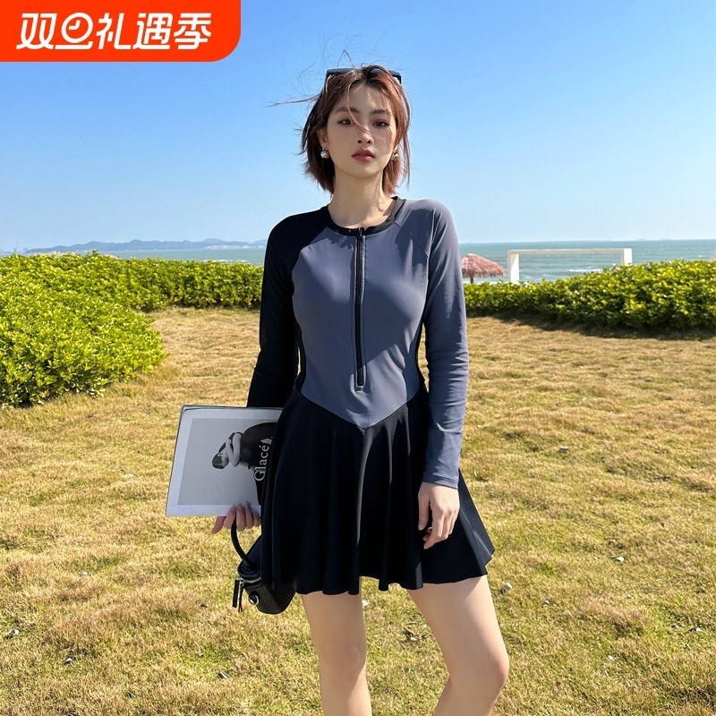 微胖泳衣女运动长袖遮肚显瘦平角裤连体大码2025新款游泳衣泡温泉