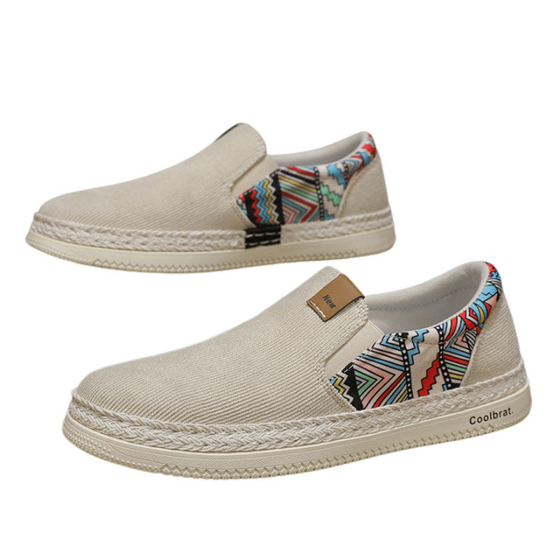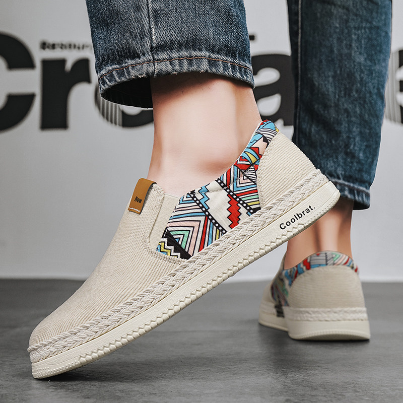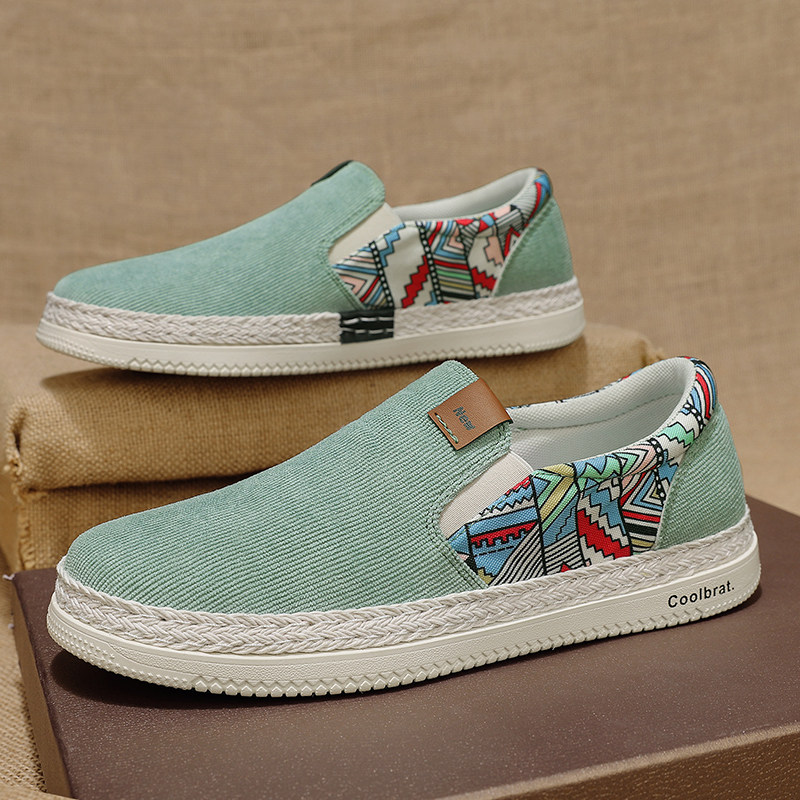 2023新款夏季老北京布鞋男款透气帆布男士牛津底工作一脚蹬休闲鞋