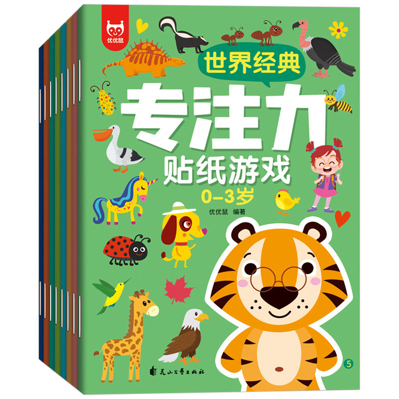 全套8册 世界经典专注力贴纸书游戏书 0-3岁儿童思维训练书连线书幼儿启蒙早教书注意力书籍幼儿园宝宝记忆力全脑开发书卡通贴贴纸