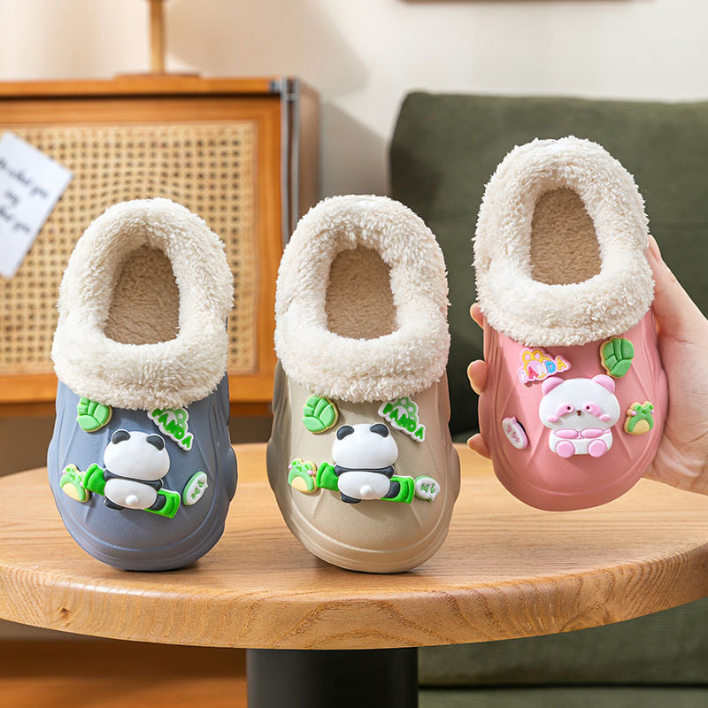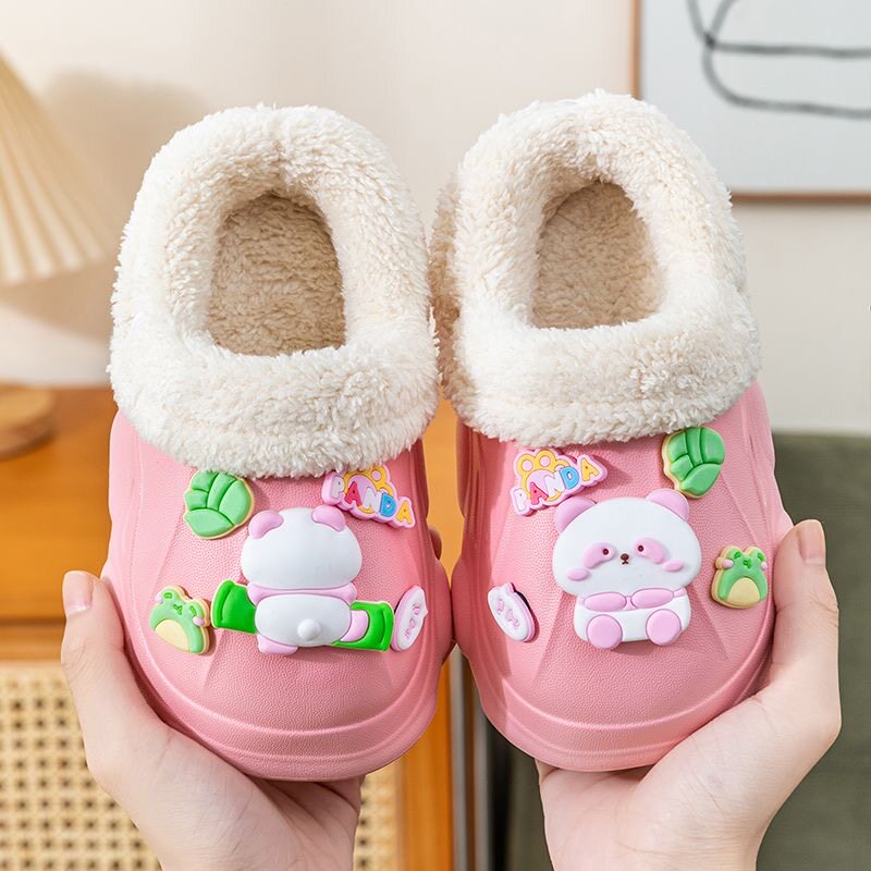 儿童拖鞋棉亲子2025秋冬季宝宝拖鞋加绒加厚保暖防滑可爱熊猫卡通
